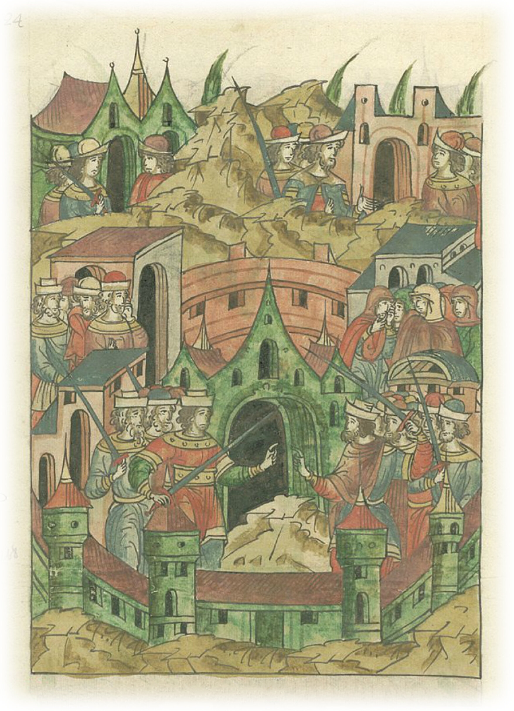 Языки говорят воеводам царя Ивана Васильевича, что магистр окопался большим рвом вокруг города Рындола, бьет из пушек и пищалей и приступает к Рындолу.