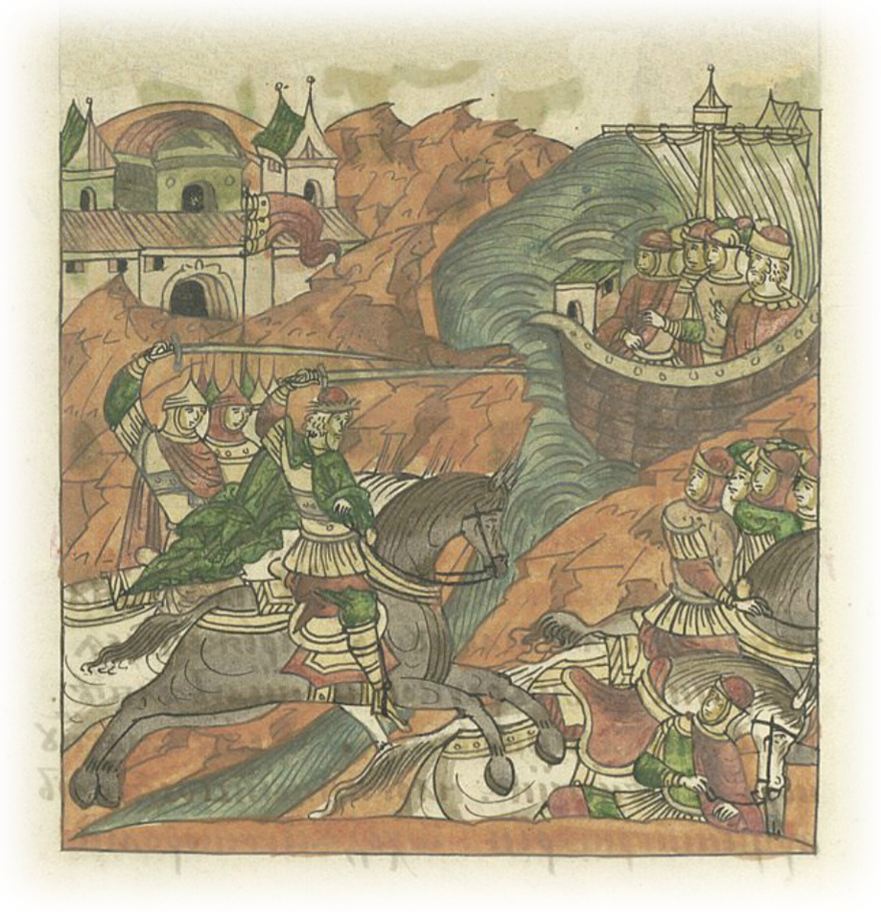 Языки говорят воеводам царя Ивана Васильевича, что магистр окопался большим рвом вокруг города Рындола, бьет из пушек и пищалей и приступает к Рындолу.