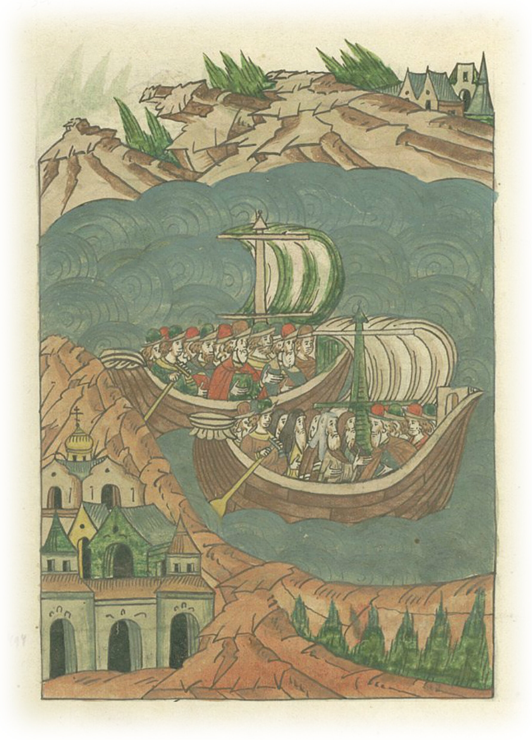 Также оттуда пошли в сандалиях* к Царьграду на Рождество святого Иоанна Предтечи. * вид судна.
