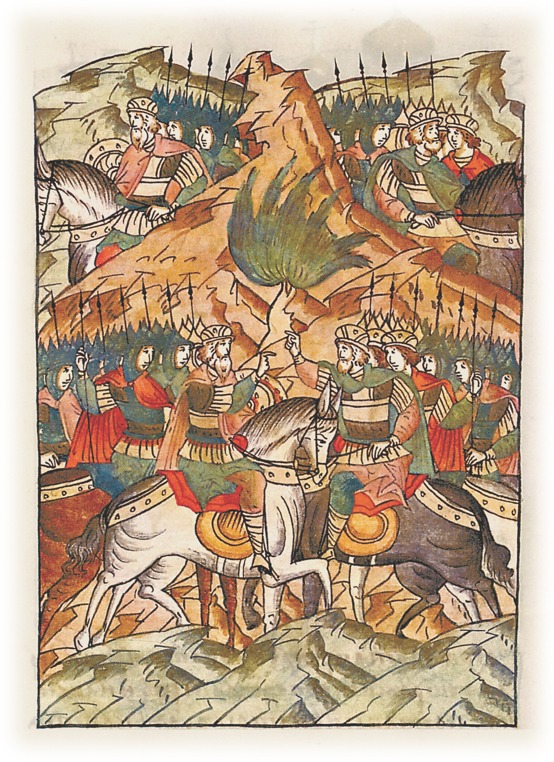 Воеводы царя Ивана Васильевича, разделившись, идут в погоню за царем Емгурчеем.