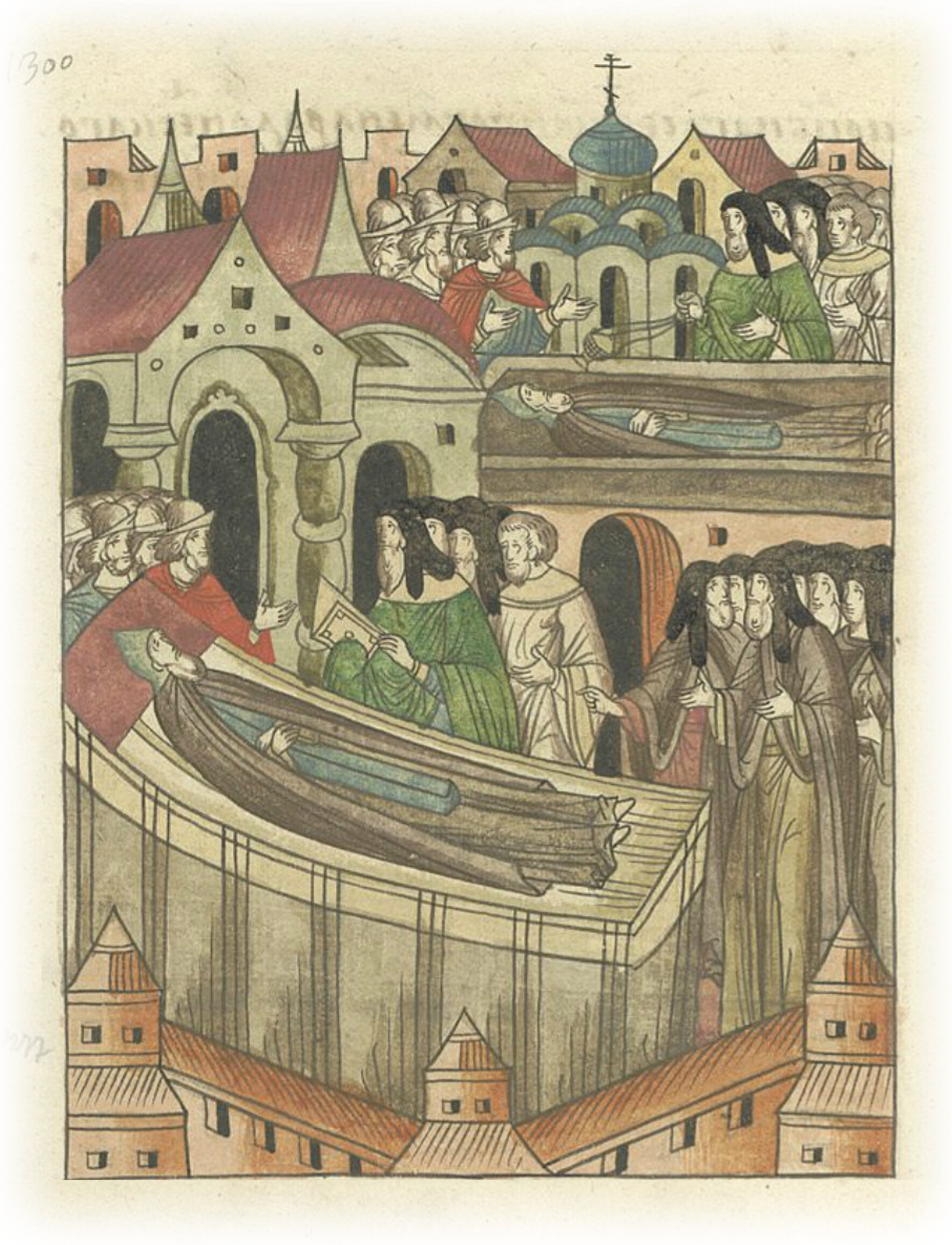 В том же году в Москве преставился в иноческом образе и схиме последний тысяцкий Василий, сын Василия Вениаминовича, его имя в монашестве было Варсонофий, похоронен он был в монастыре святого Богоявления.