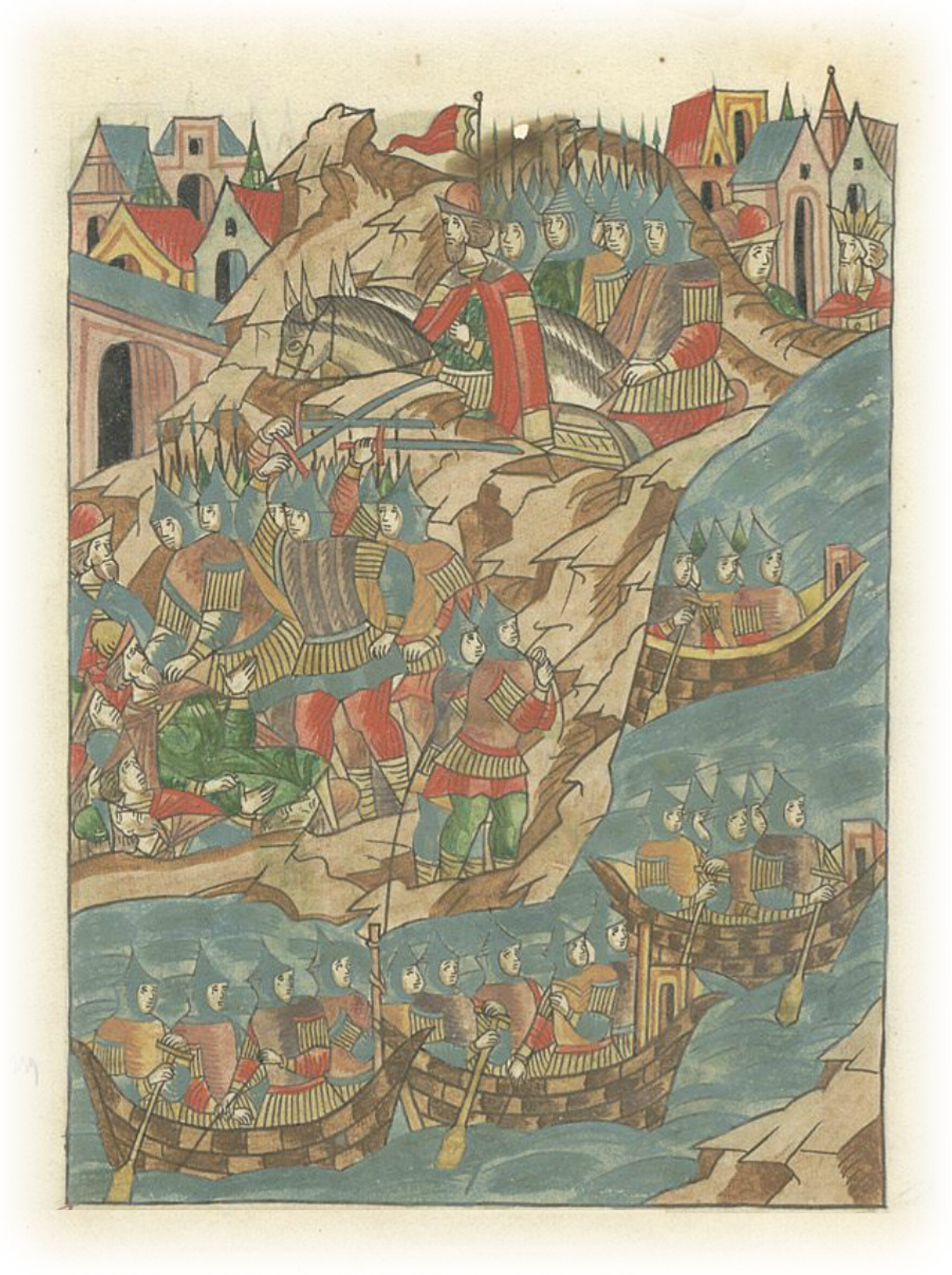 И было это в третий год царства его, послал татар своих в город, нарицаемый Болгары, он же Казань на Волге, и повелел христианских купцов избить, а гостей русских ограбить, а суда их и товары отнимать и переносить к себе на перевоз.