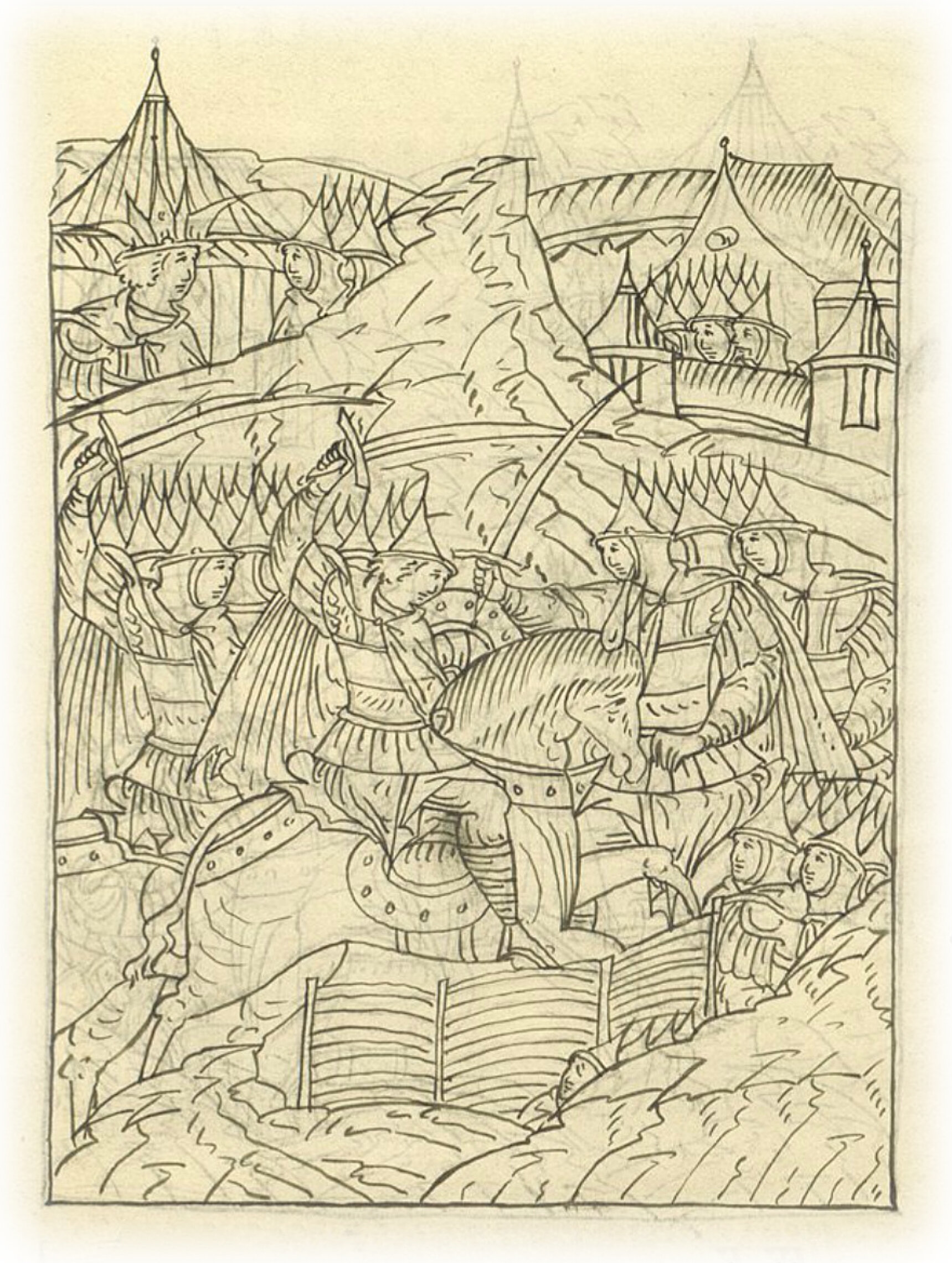 Языки говорят воеводам царя Ивана Васильевича, что магистр окопался большим рвом вокруг города Рындола, бьет из пушек и пищалей и приступает к Рындолу.