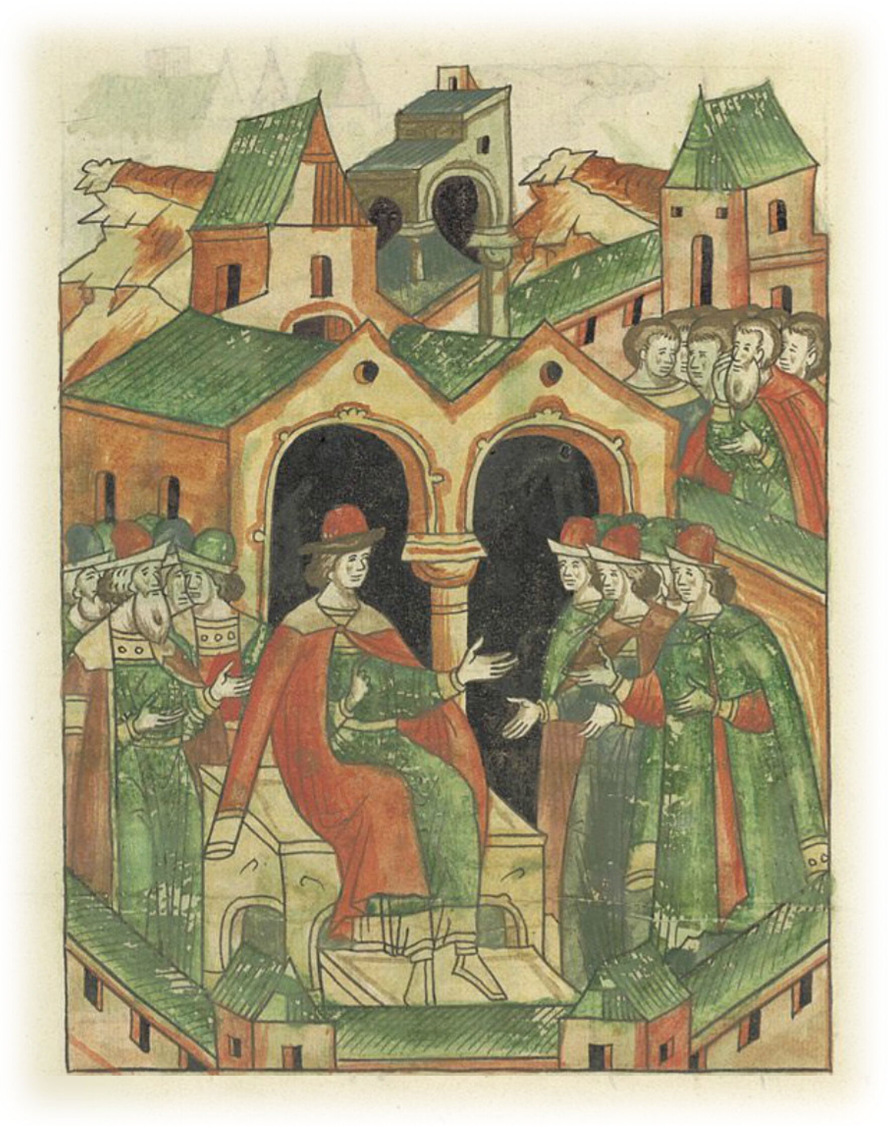 Он же, хотя и украшен был благородием и храбростью, но все-таки правление державы воспринимал как поделие*, более занимаясь охотой на зверей, и советникам младоумным внимал, от которых, по Божьему попущению, были многие беспорядки, оскудение в людях и убыток имению. * не главная, второстепенная работа.