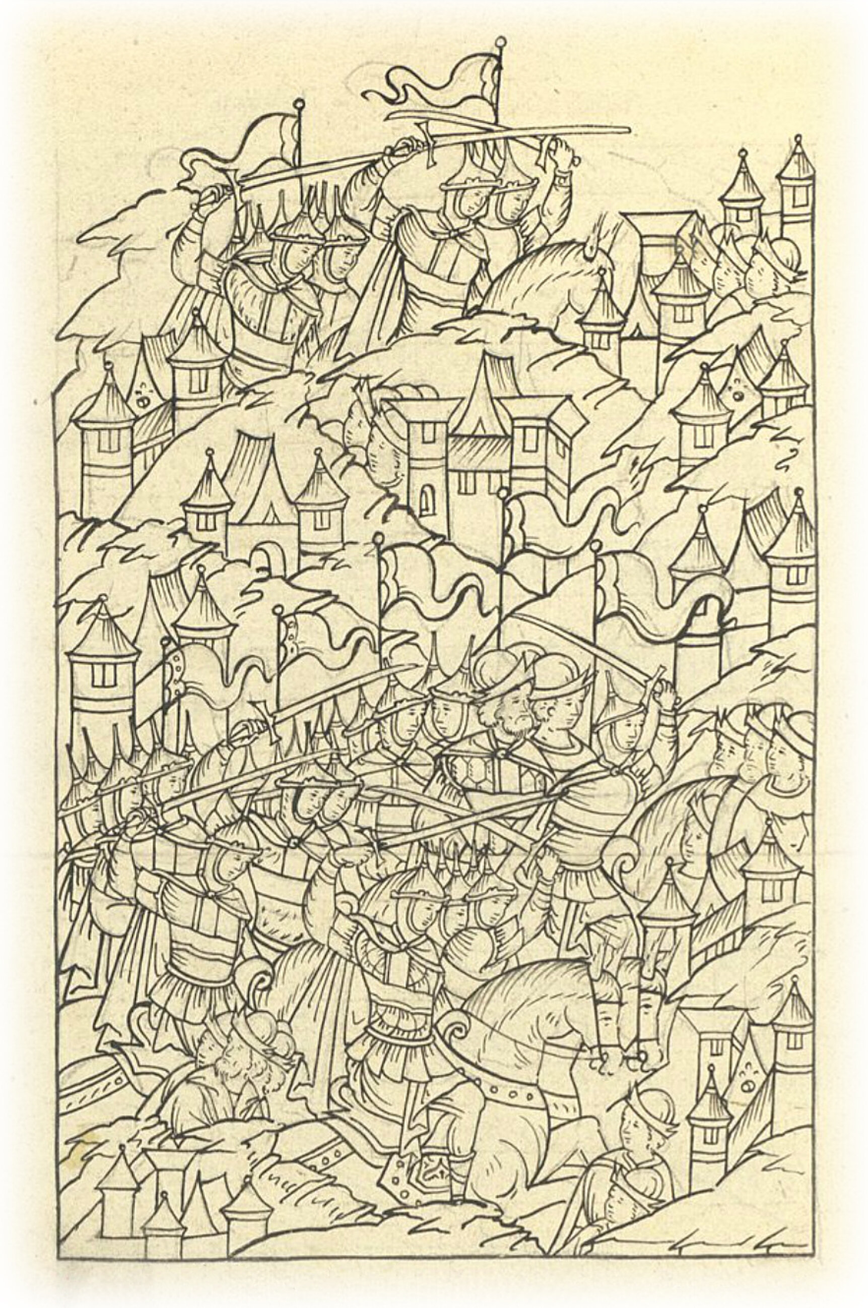 Языки говорят воеводам царя Ивана Васильевича, что магистр окопался большим рвом вокруг города Рындола, бьет из пушек и пищалей и приступает к Рындолу.