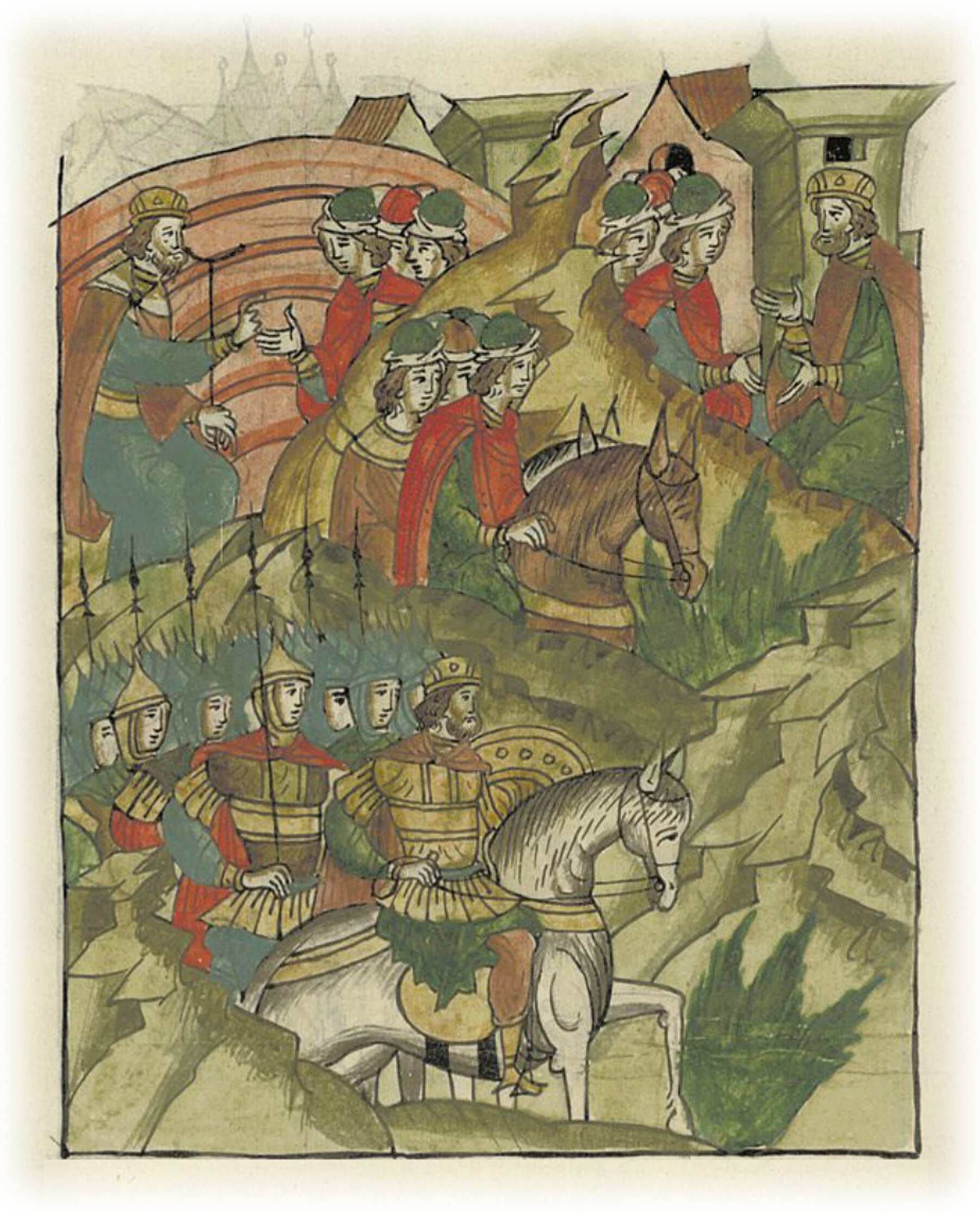 Языки говорят воеводам царя Ивана Васильевича, что магистр окопался большим рвом вокруг города Рындола, бьет из пушек и пищалей и приступает к Рындолу.