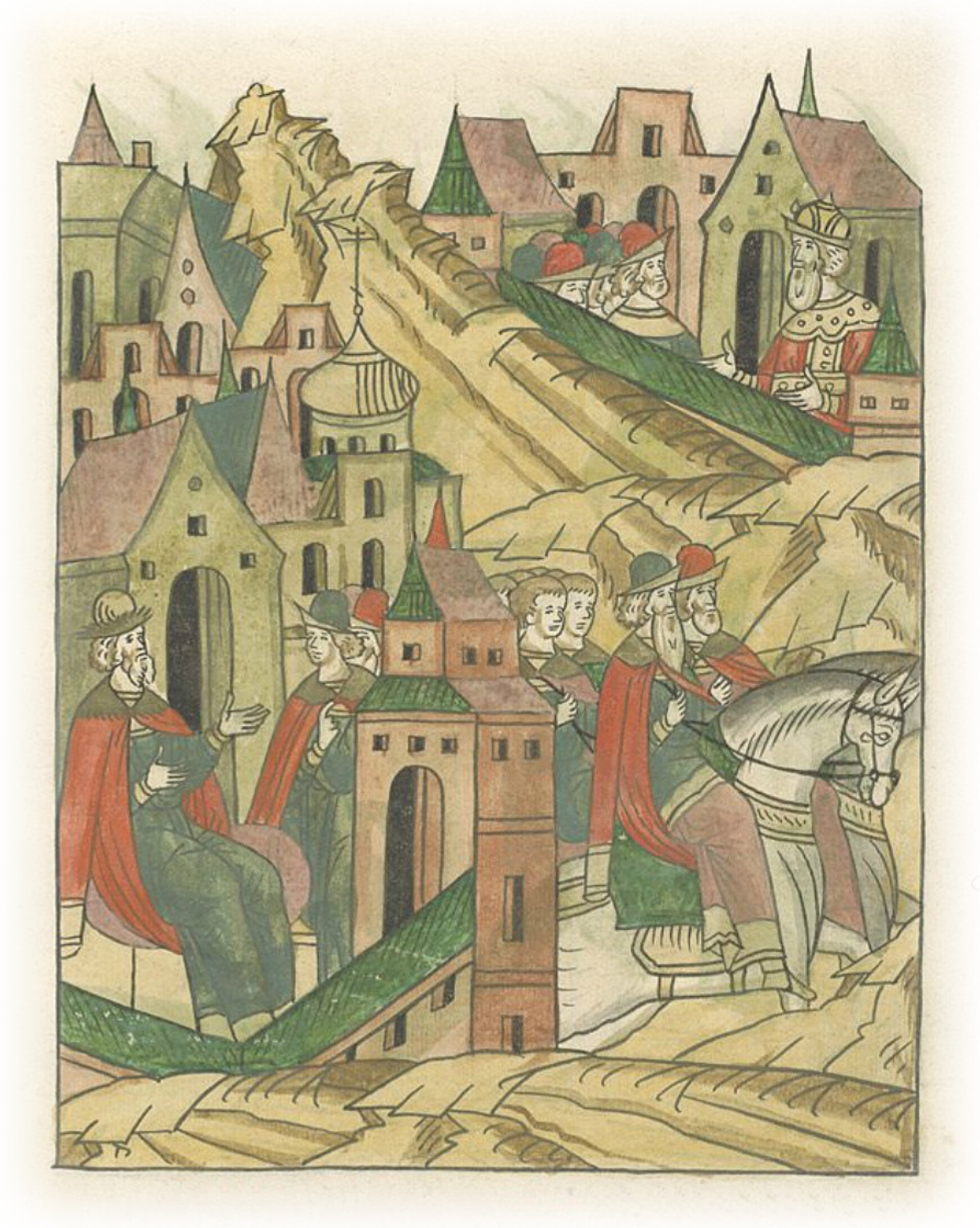 Ругодивские посадники Яким и Захар приезжают в Москву. Воеводы царя Ивана Васильевича Алексей Адашев и Иван Михайлов сообщают им, что государь пожалует их, если сдадут его воеводам помимо Ругодива Вышгород.