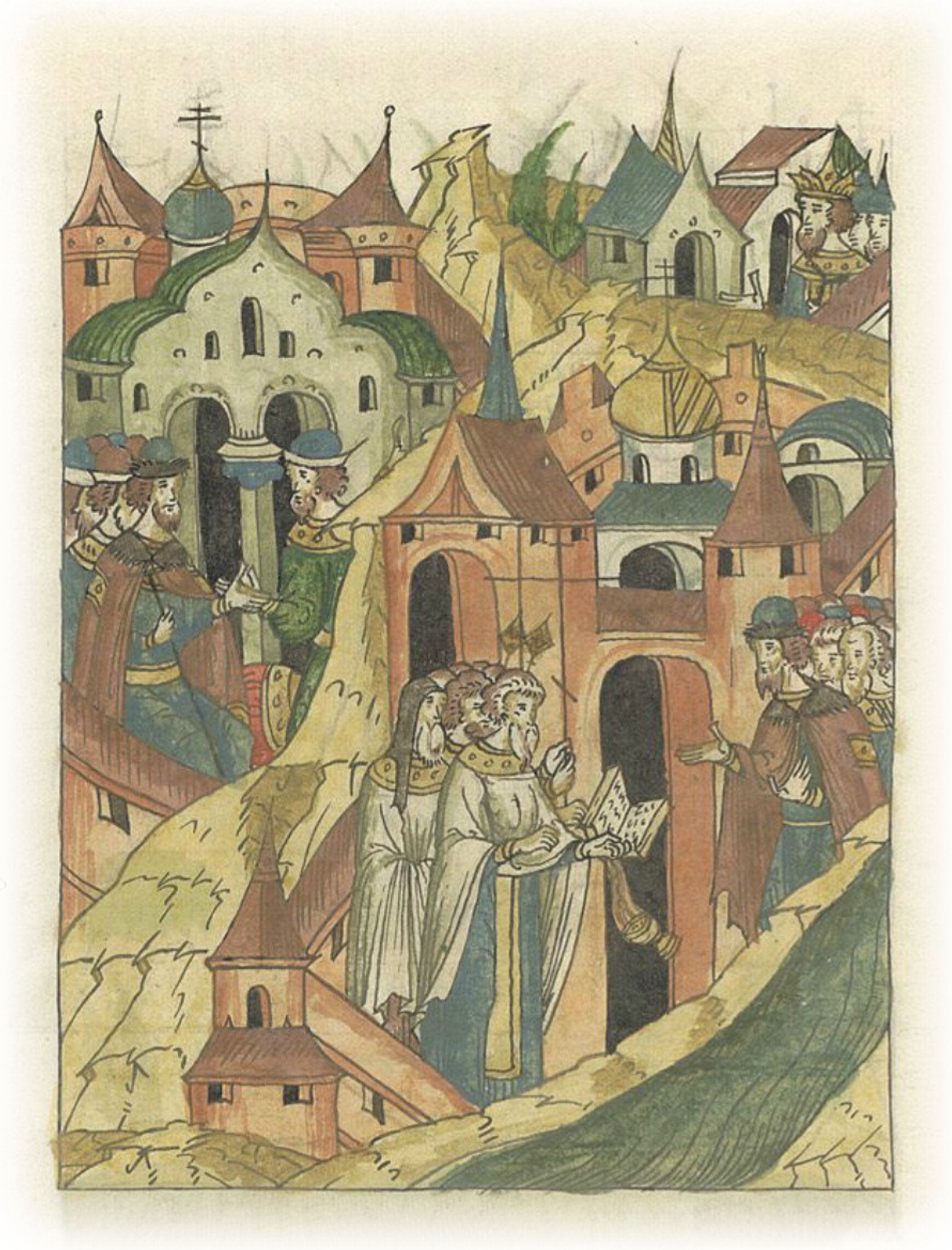 Ругодивские посадники Яким и Захар приезжают в Москву. Воеводы царя Ивана Васильевича Алексей Адашев и Иван Михайлов сообщают им, что государь пожалует их, если сдадут его воеводам помимо Ругодива Вышгород.