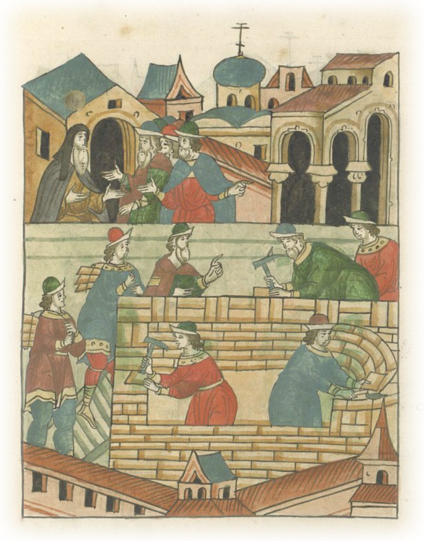 Заложение новой церкви на месте разобранной церкви архангела Михаила в Москве.