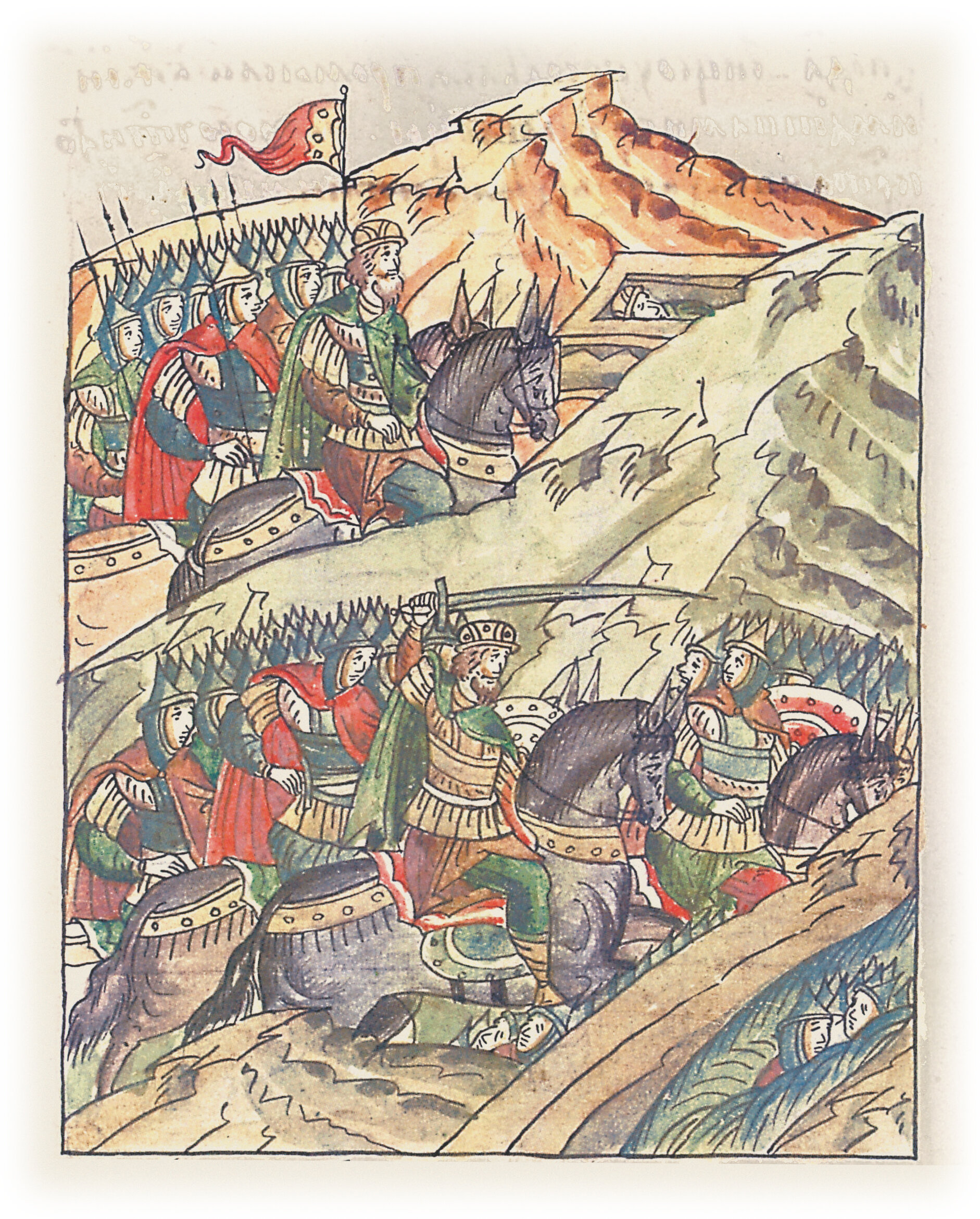 Воеводы царя Ивана Васильевича, разделившись, идут в погоню за царем Емгурчеем.