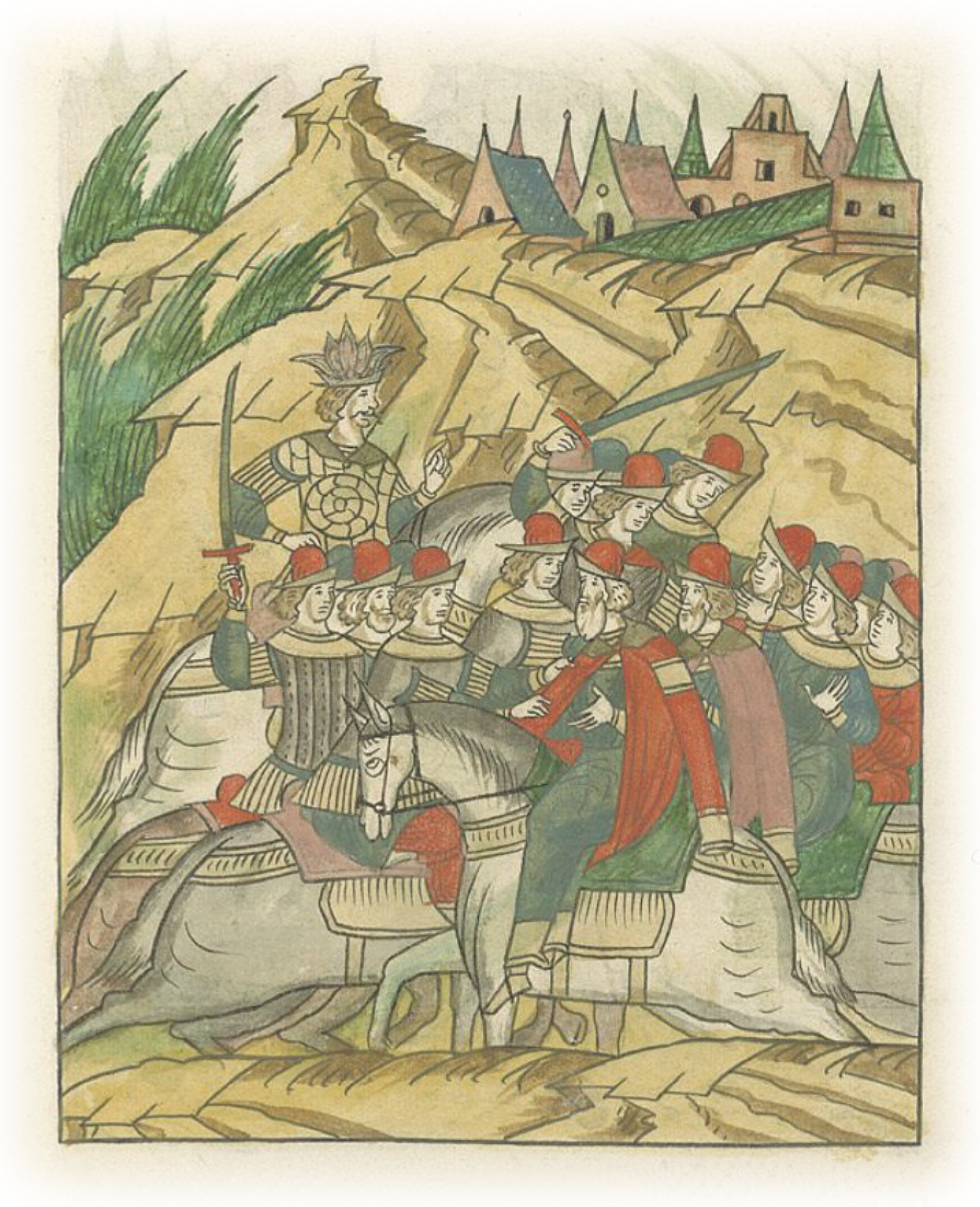 Языки говорят воеводам царя Ивана Васильевича, что магистр окопался большим рвом вокруг города Рындола, бьет из пушек и пищалей и приступает к Рындолу.
