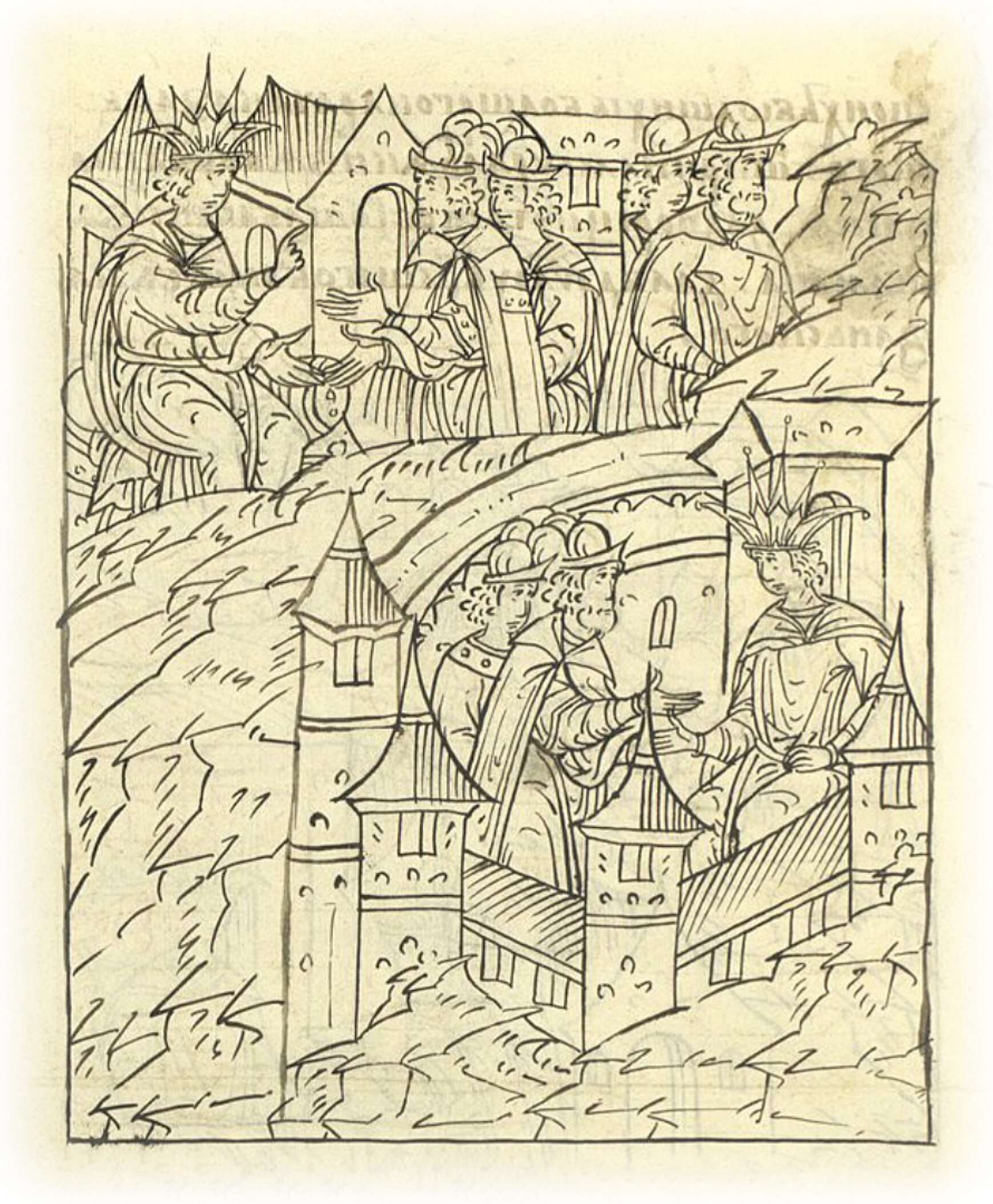 Языки говорят воеводам царя Ивана Васильевича, что магистр окопался большим рвом вокруг города Рындола, бьет из пушек и пищалей и приступает к Рындолу.