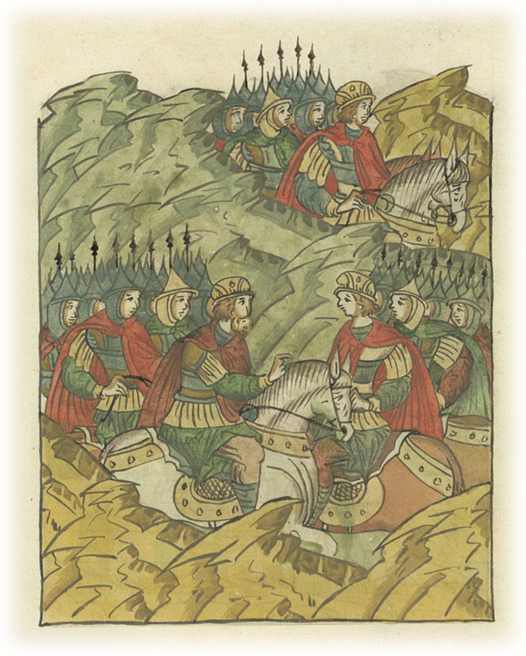 Воеводы царя Ивана Васильевича, разделившись, идут в погоню за царем Емгурчеем.