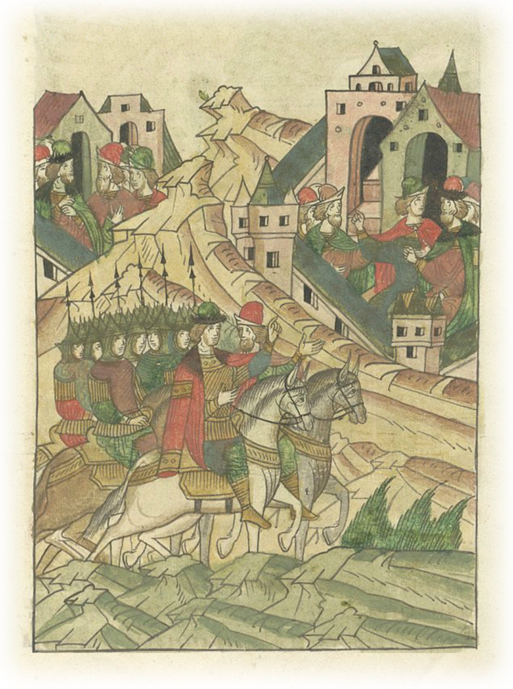 Языки говорят воеводам царя Ивана Васильевича, что магистр окопался большим рвом вокруг города Рындола, бьет из пушек и пищалей и приступает к Рындолу.