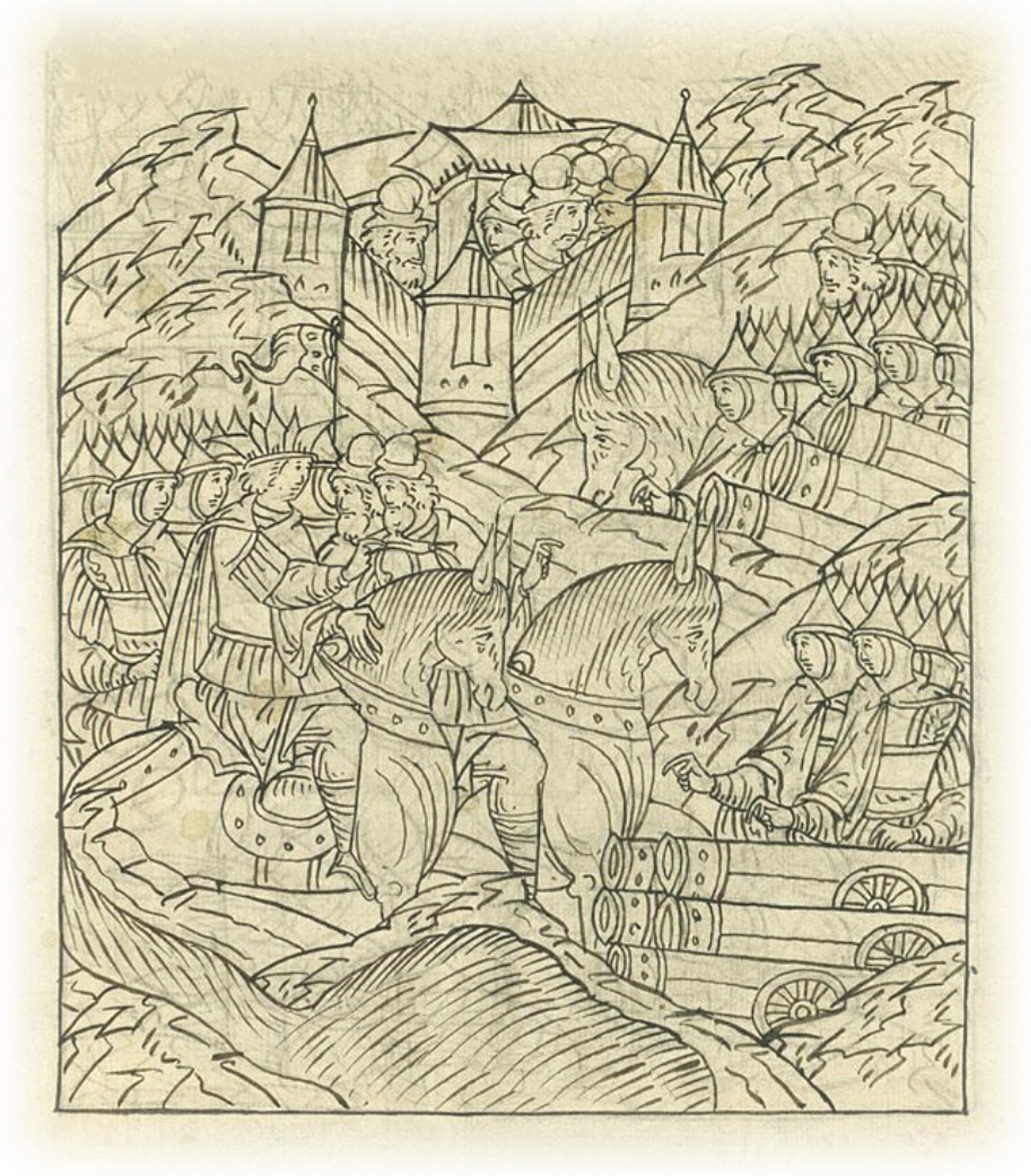 Языки говорят воеводам царя Ивана Васильевича, что магистр окопался большим рвом вокруг города Рындола, бьет из пушек и пищалей и приступает к Рындолу.