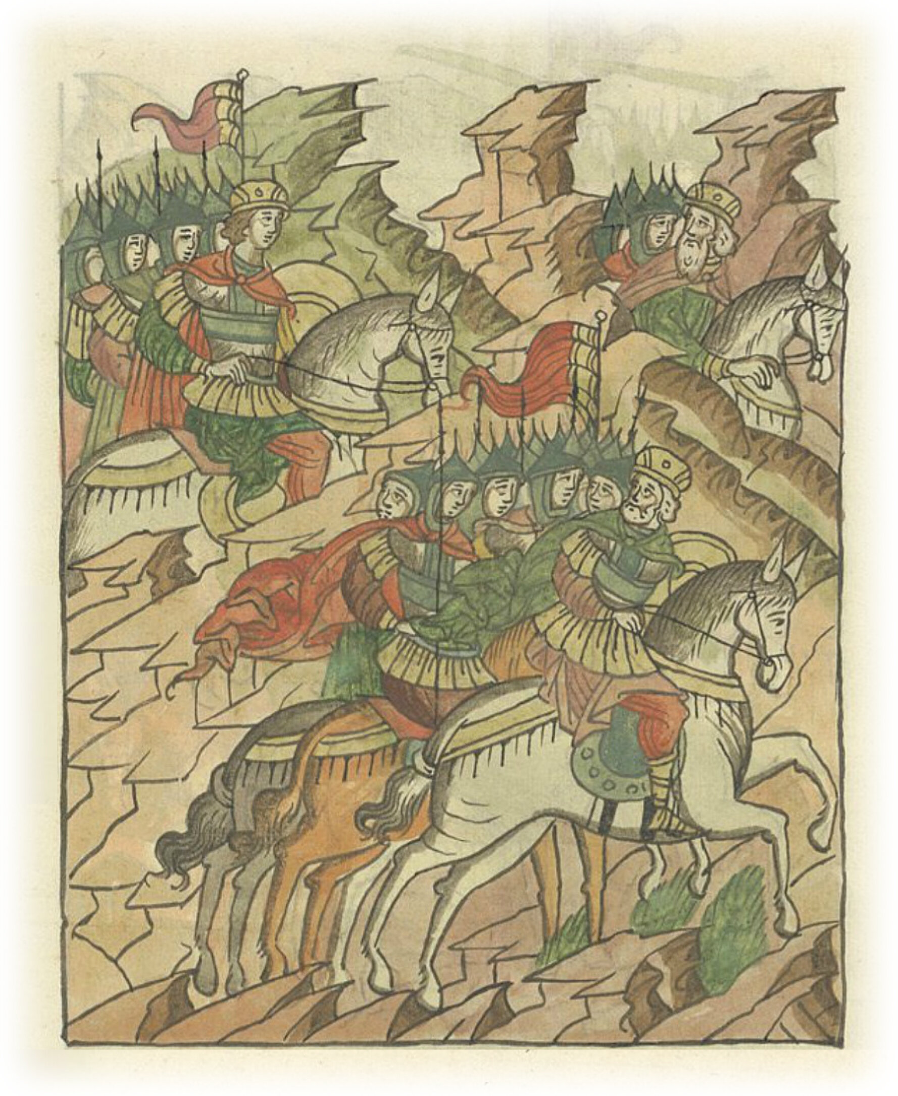 Воеводы царя Ивана Васильевича, разделившись, идут в погоню за царем Емгурчеем.