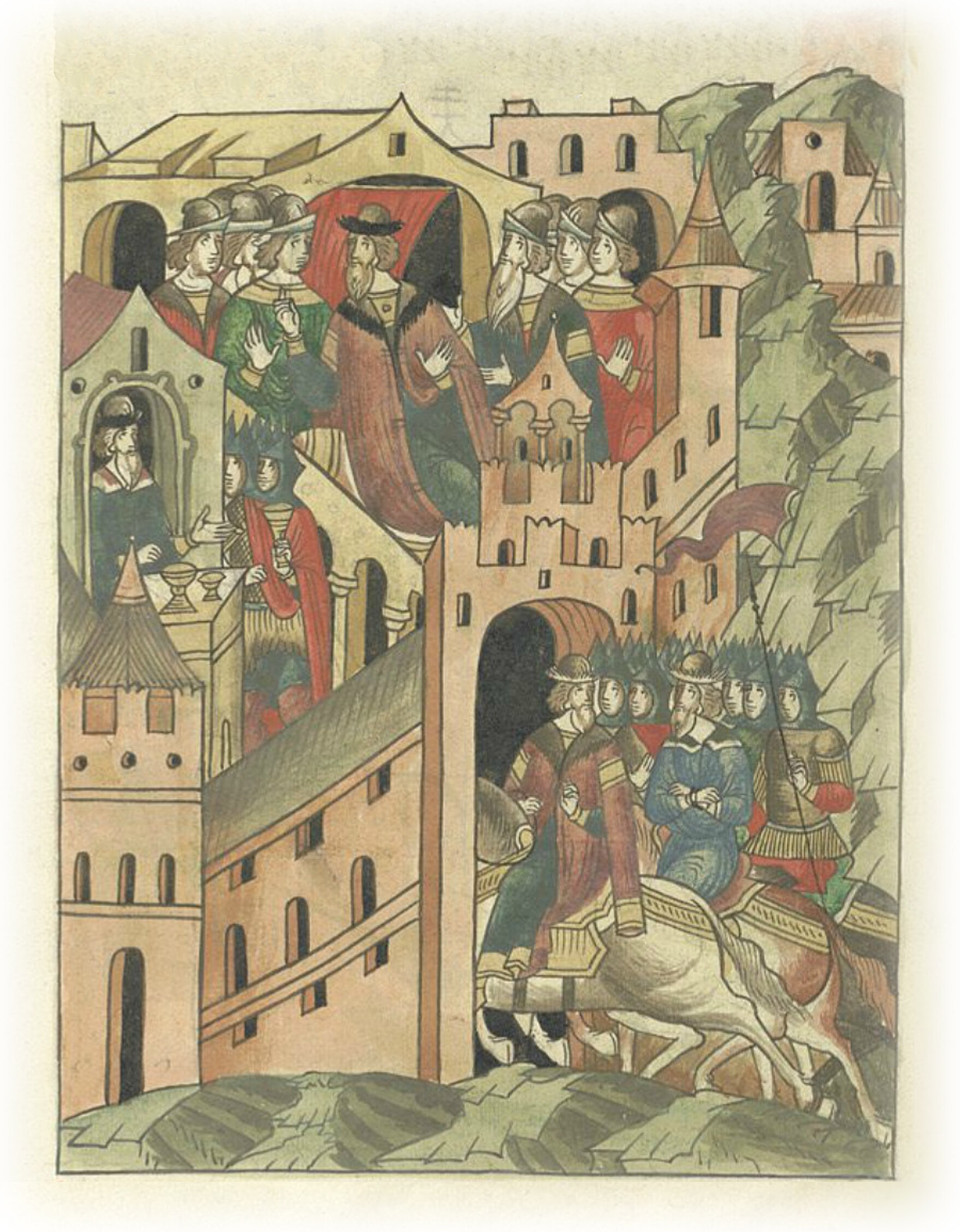 И привел его с собою на Москву, и держал его у себя в плену, но в бережении и в чести всякой, ибо хотел с ним укрепить (мир) крестным целованием и отпустить его в его отчину на великое княжение Рязанское.