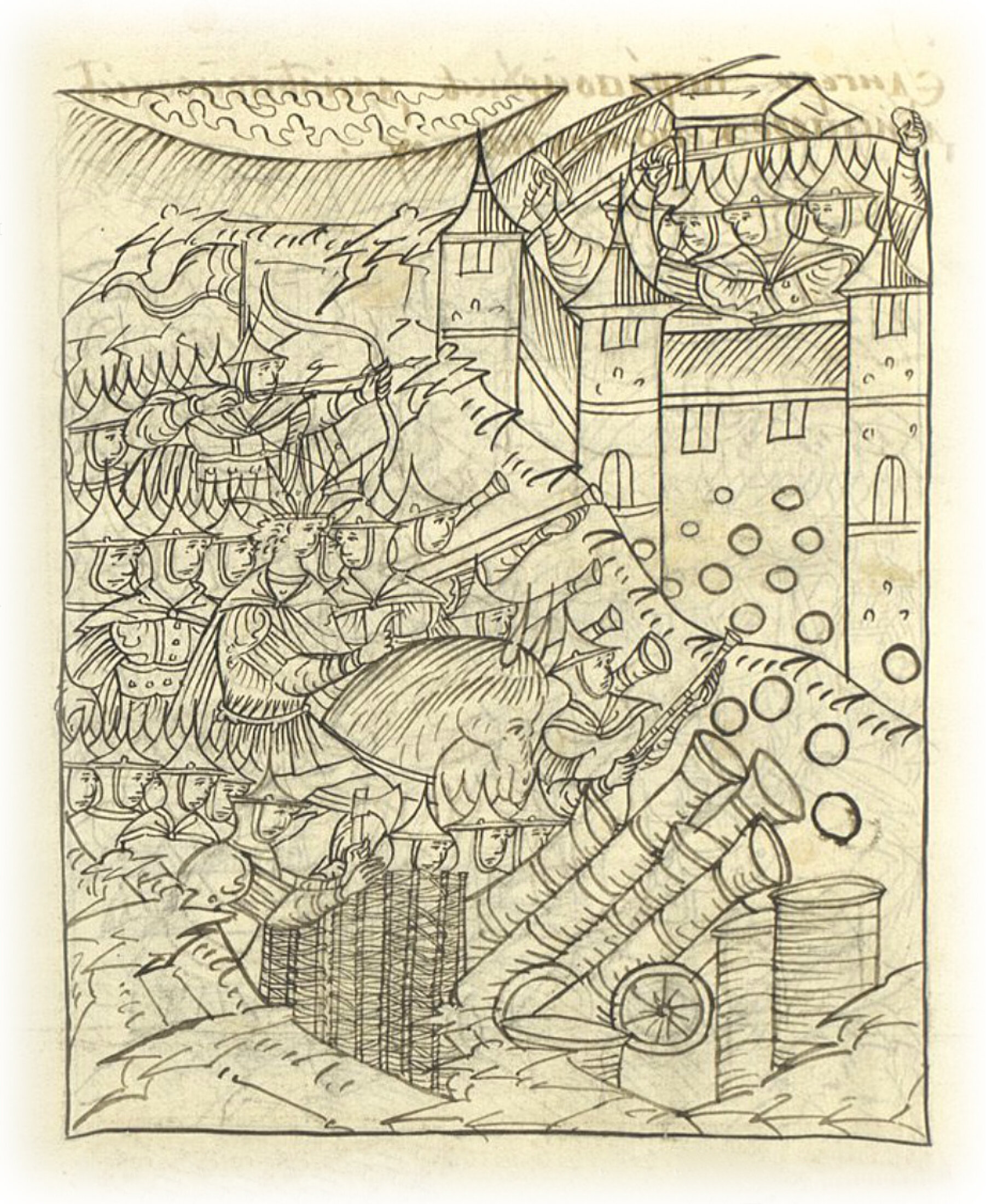 и осадные укрепления велел сделать, и к городу приступать. И был приступ к городу (и город не взяли, но множество людей с обеих сторон побили; в городе из пушек убили царевича, сына младшей жены Сафа-Кирея, и крымца Челбана-князя. И было нужно долго стоять), но в то время изменилась погода, начались сильные ветры и великие дожди, и непомерная мокрота, и стало невозможно к городу приступать из-за мокроты, и из пушек и пищалей нельзя было стрелять.