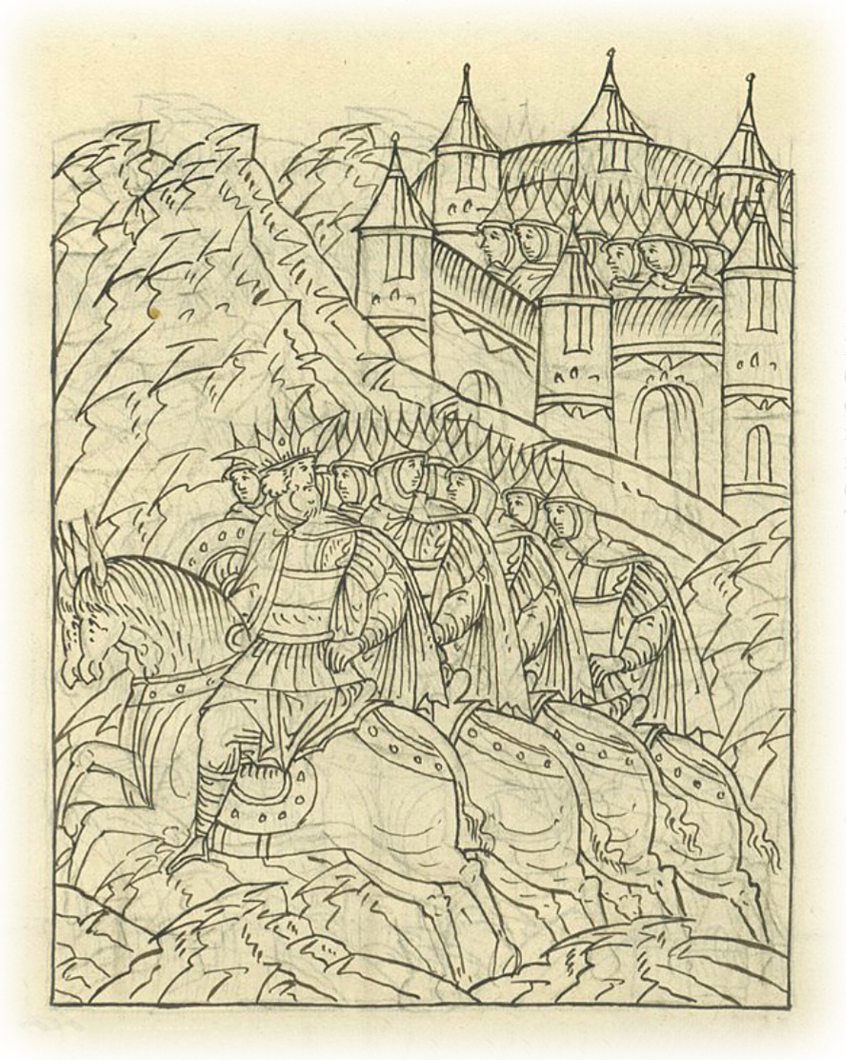 Языки говорят воеводам царя Ивана Васильевича, что магистр окопался большим рвом вокруг города Рындола, бьет из пушек и пищалей и приступает к Рындолу.
