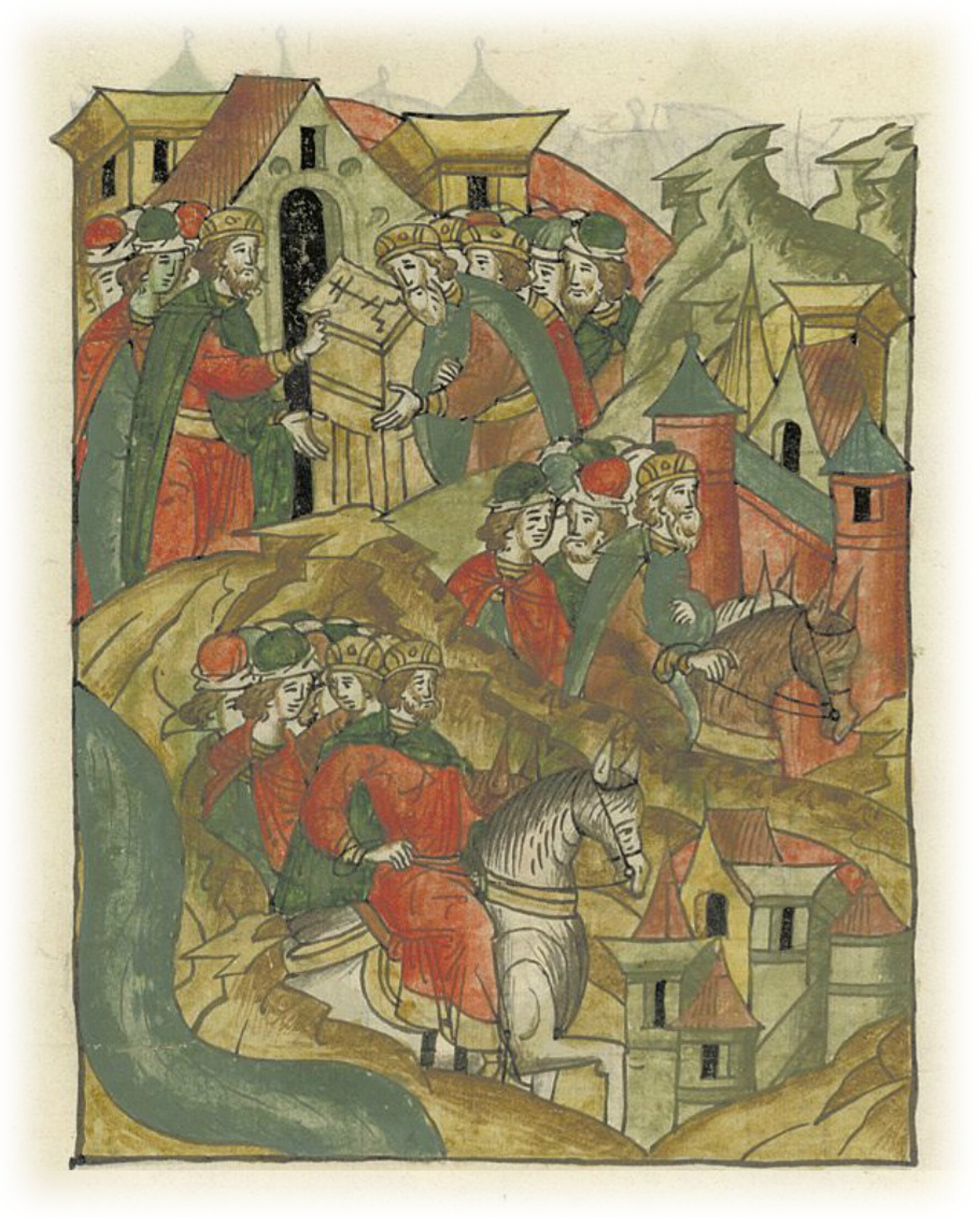 И так привел всех к присяге на кресте: и Рюрика, и Олеговичей, и Владимирка, и отпустил Рюрика в Овруч, а Ольговичей отпустил за Днепр в Чернигов,