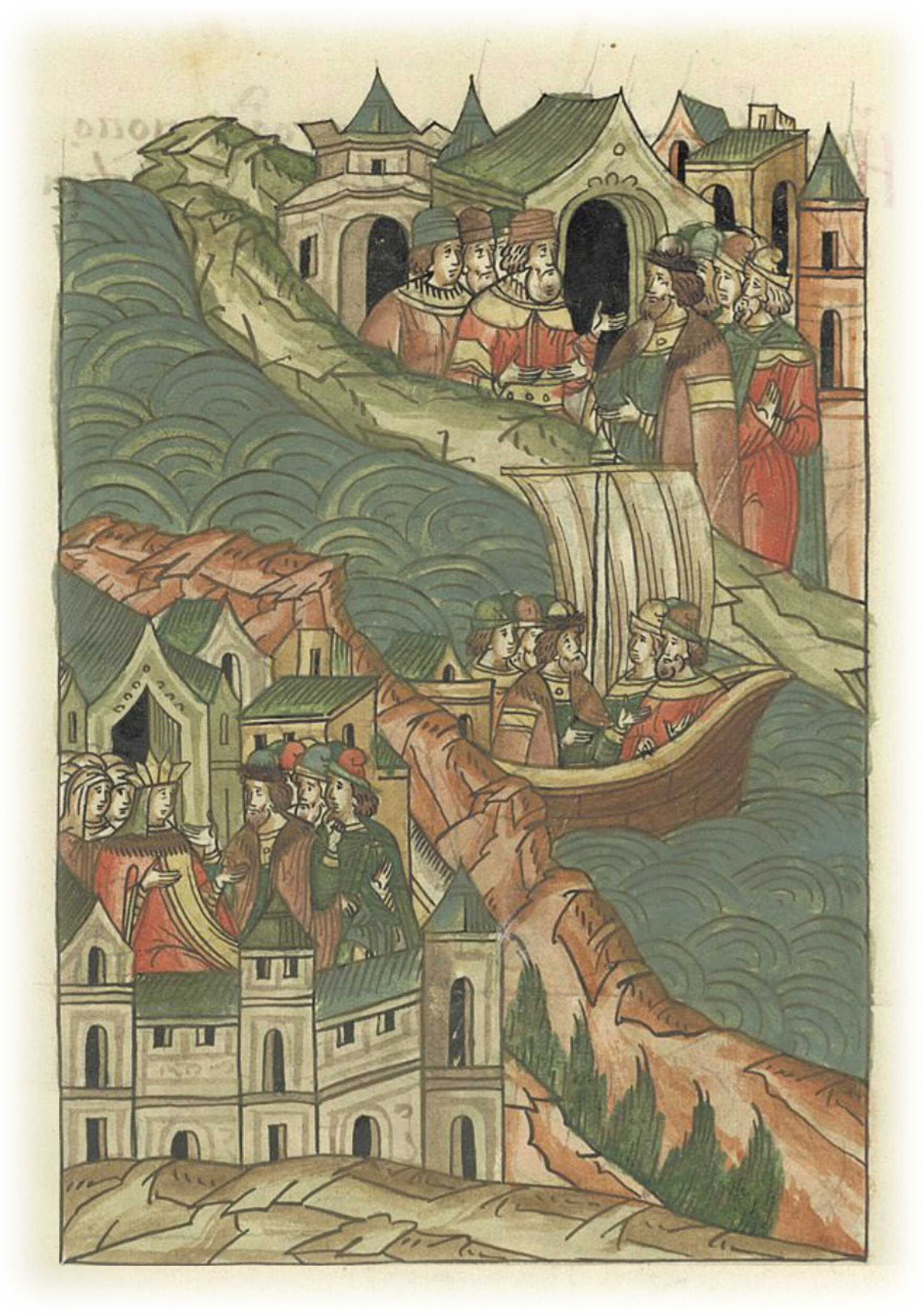 Князь Андрей Ярославич, оставив после поражения от татар свою княгиню в немецком городе Колывань, уходит за море в Свейскую землю.