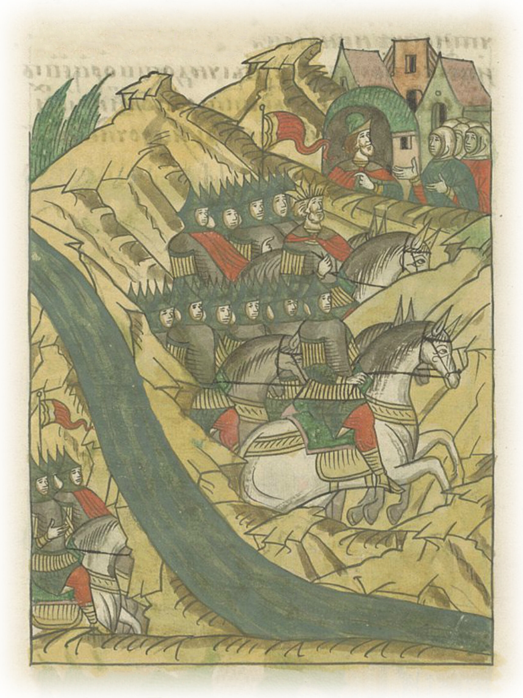 Воеводы царя Ивана Васильевича, разделившись, идут в погоню за царем Емгурчеем.