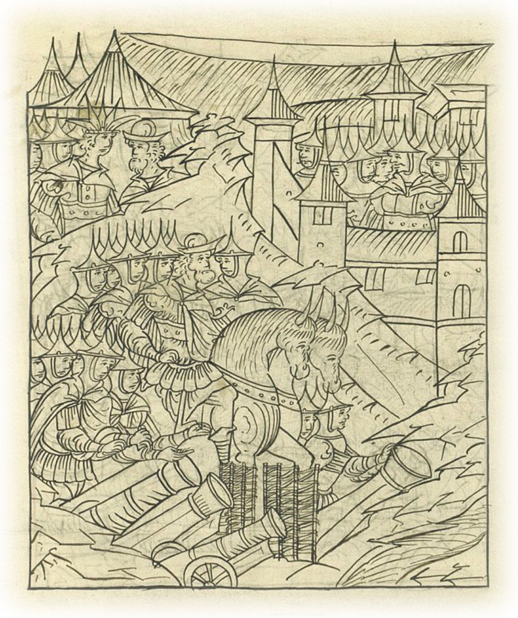 Языки говорят воеводам царя Ивана Васильевича, что магистр окопался большим рвом вокруг города Рындола, бьет из пушек и пищалей и приступает к Рындолу.