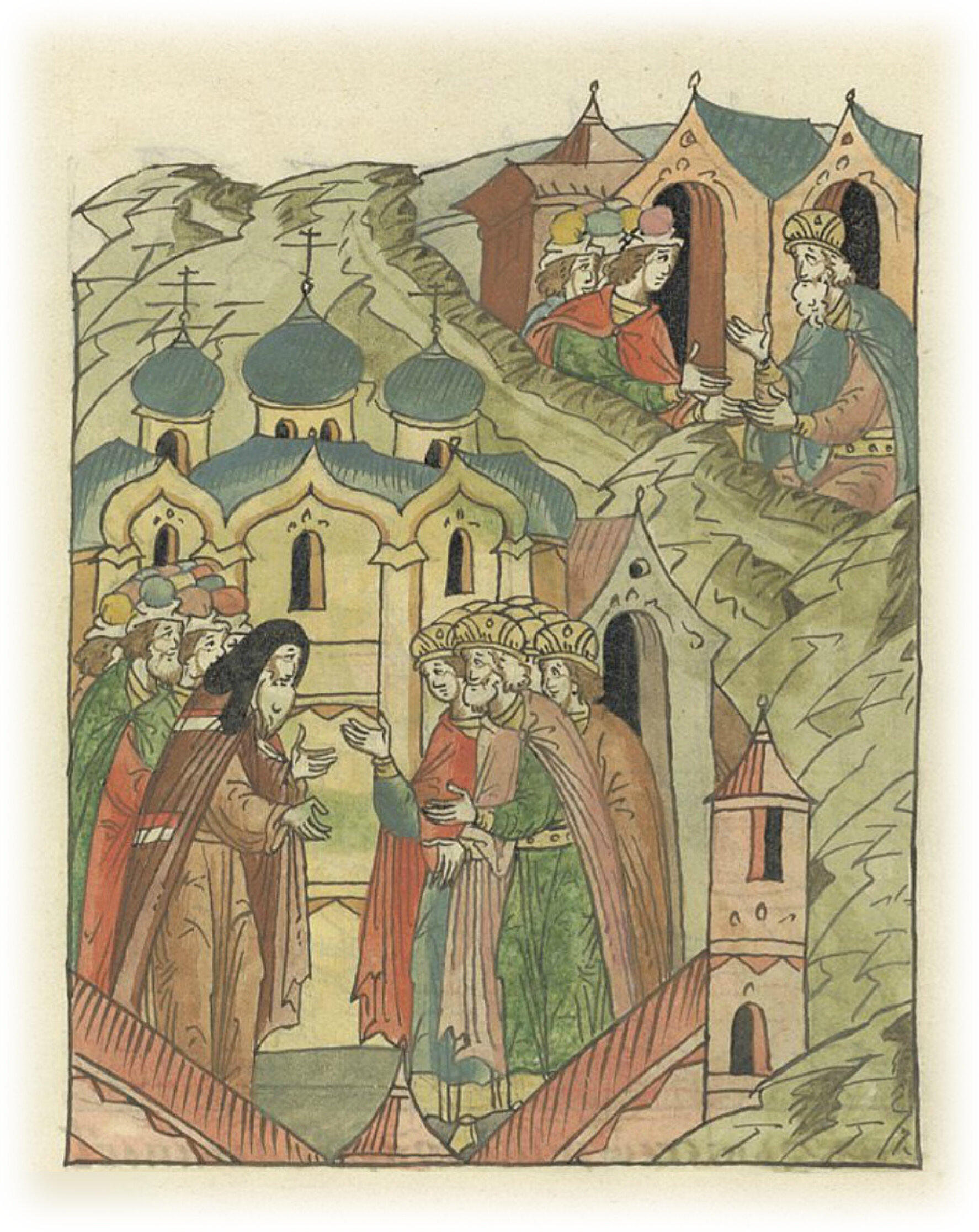 Великий князь Всеволод Святославич Чермный с Ольговичами молят Киевского митрополита Матвея, чтобы помог им заключить договор с великим князем Всеволодом Юрьевичем.