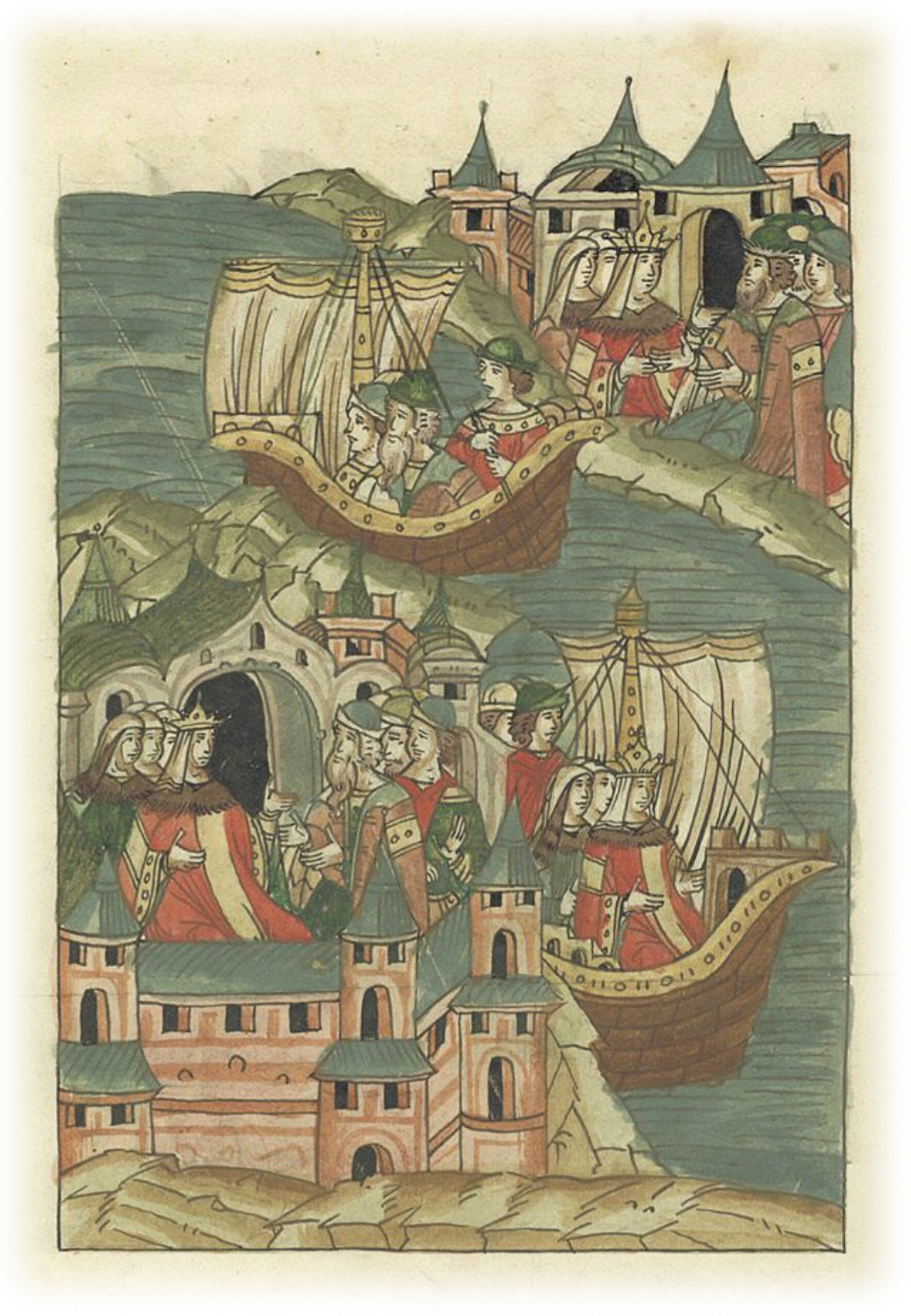 Князь Андрей Ярославич забирает свою княгиню в Свейскую землю из немецкого города Колывань.
