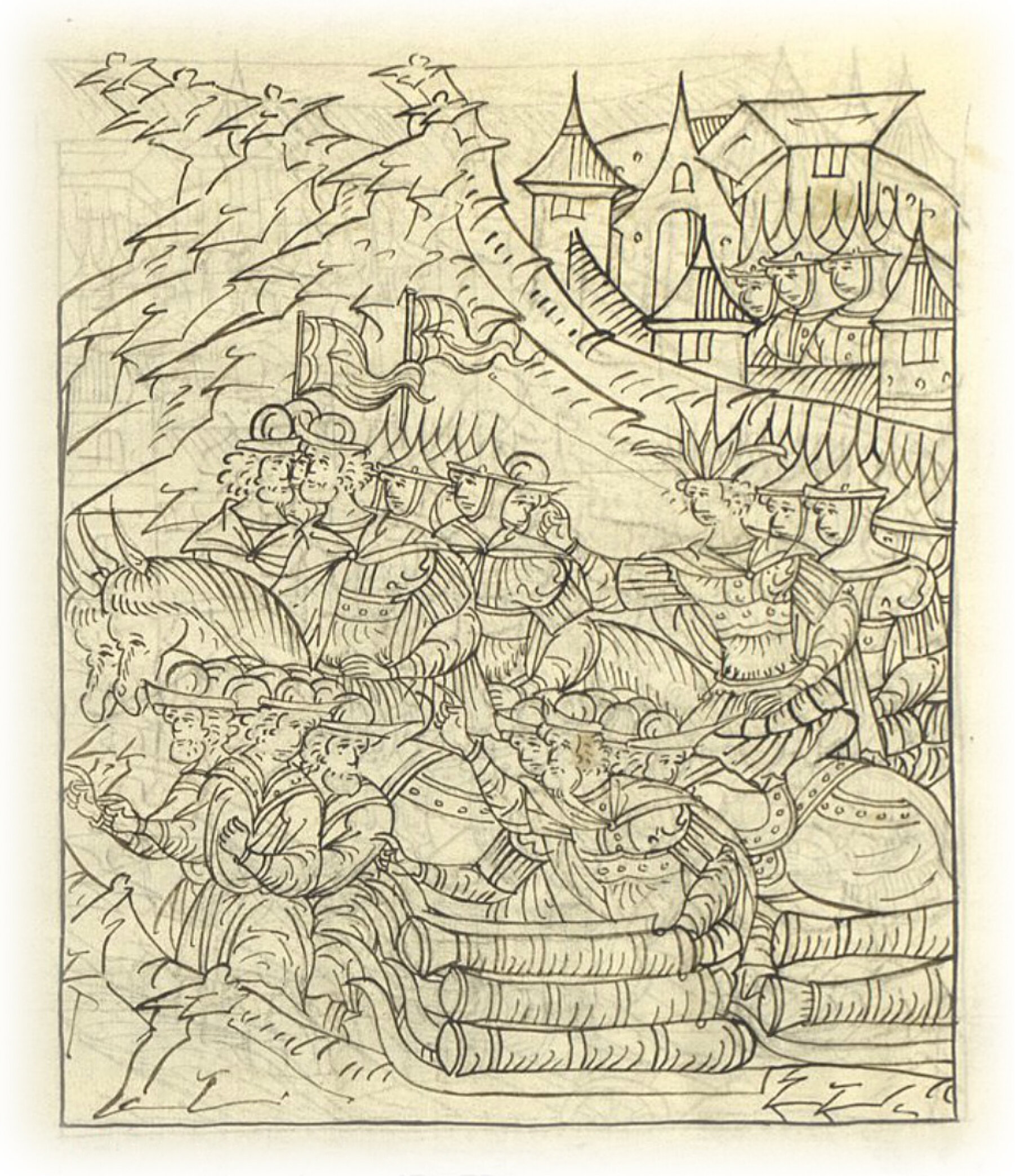 Языки говорят воеводам царя Ивана Васильевича, что магистр окопался большим рвом вокруг города Рындола, бьет из пушек и пищалей и приступает к Рындолу.