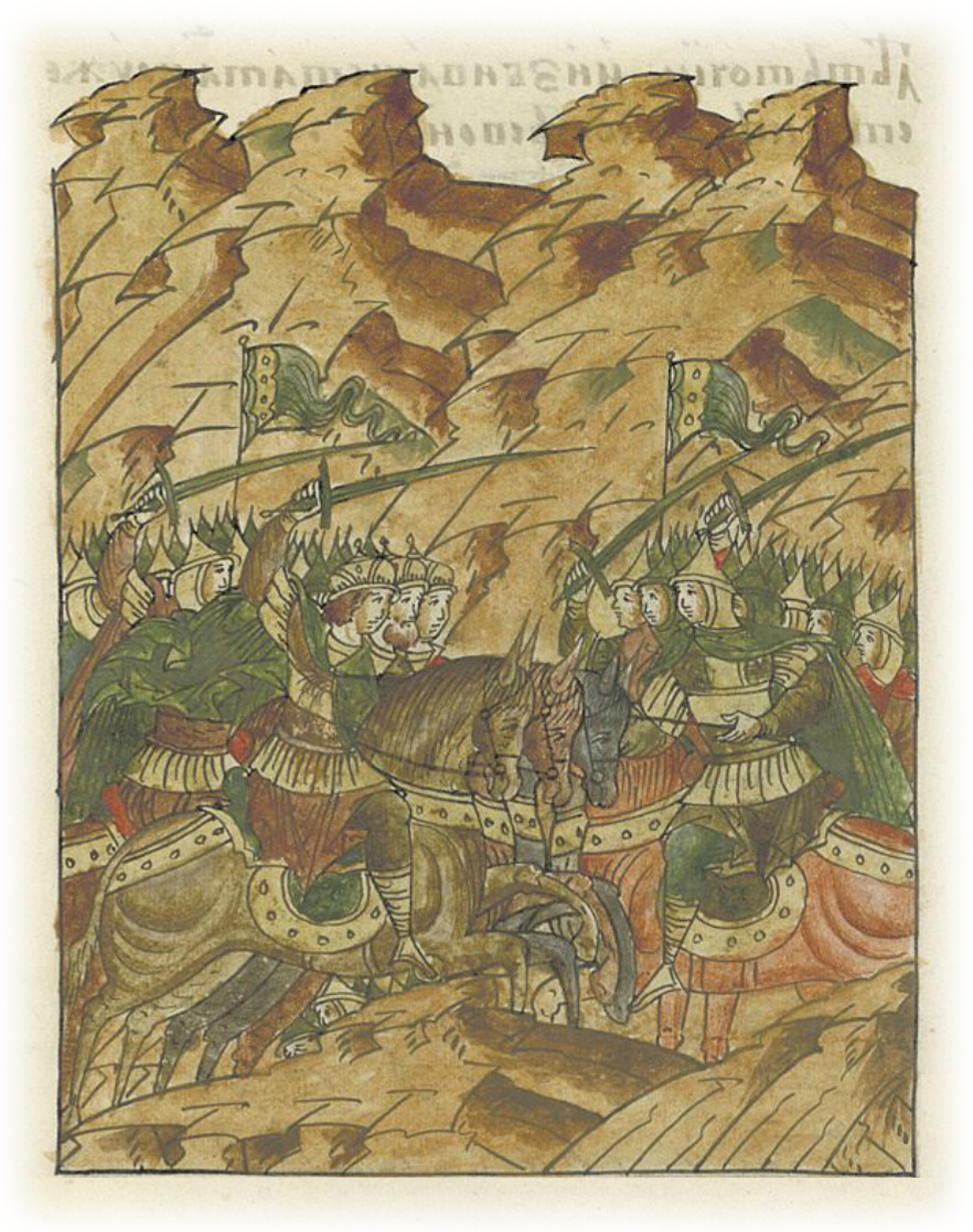 И сошлись полки, впереди ехал князь Даниил Романович (из рода) Мстиславичей, князь Семен Олюевич и князь Василько Гаврилович, и тут князя Василька пронзили копьем, а князя Даниила Романовича (из рода) Мстиславичей пронзили в грудь, и пролилась кровь; он же скакал, не чувствуя боли, так как был мужествен и силен в бою, хоть и молод, восемнадцати только лет (от роду), мужественно избивал татар вместе со своим полком.