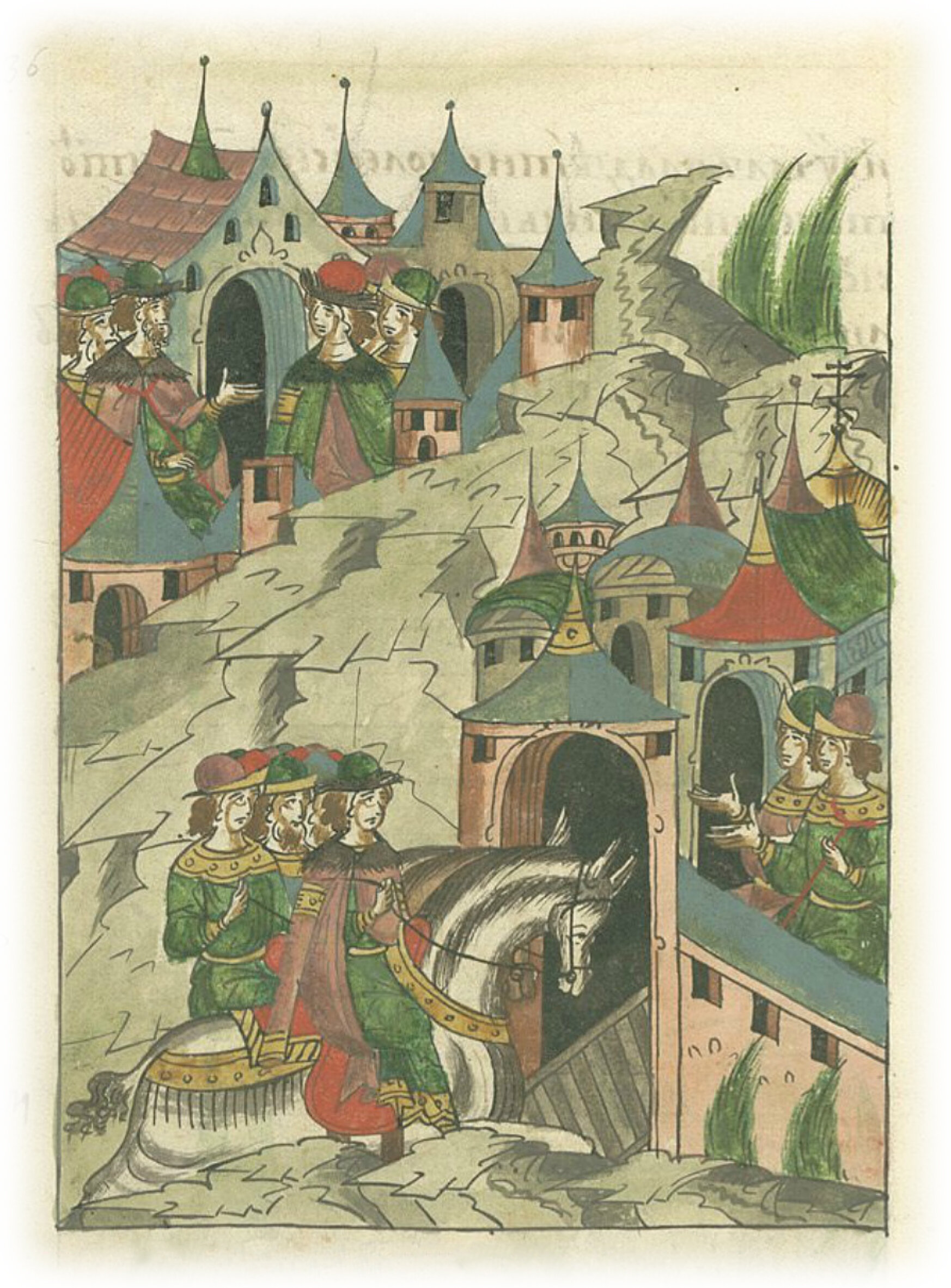 Ругодивские посадники Яким и Захар приезжают в Москву. Воеводы царя Ивана Васильевича Алексей Адашев и Иван Михайлов сообщают им, что государь пожалует их, если сдадут его воеводам помимо Ругодива Вышгород.
