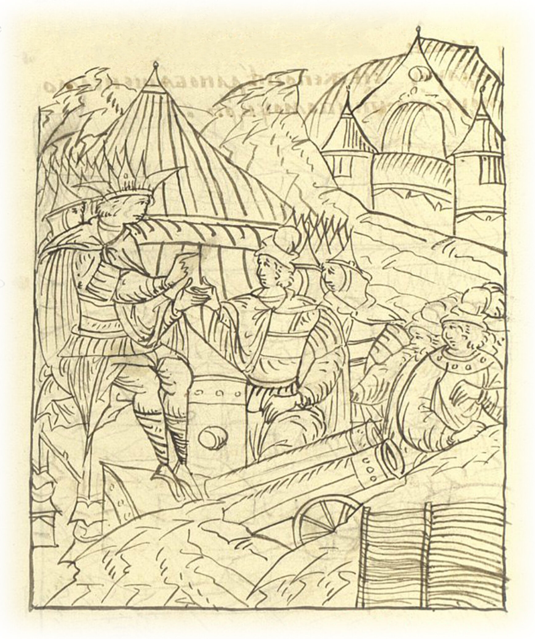 Языки говорят воеводам царя Ивана Васильевича, что магистр окопался большим рвом вокруг города Рындола, бьет из пушек и пищалей и приступает к Рындолу.