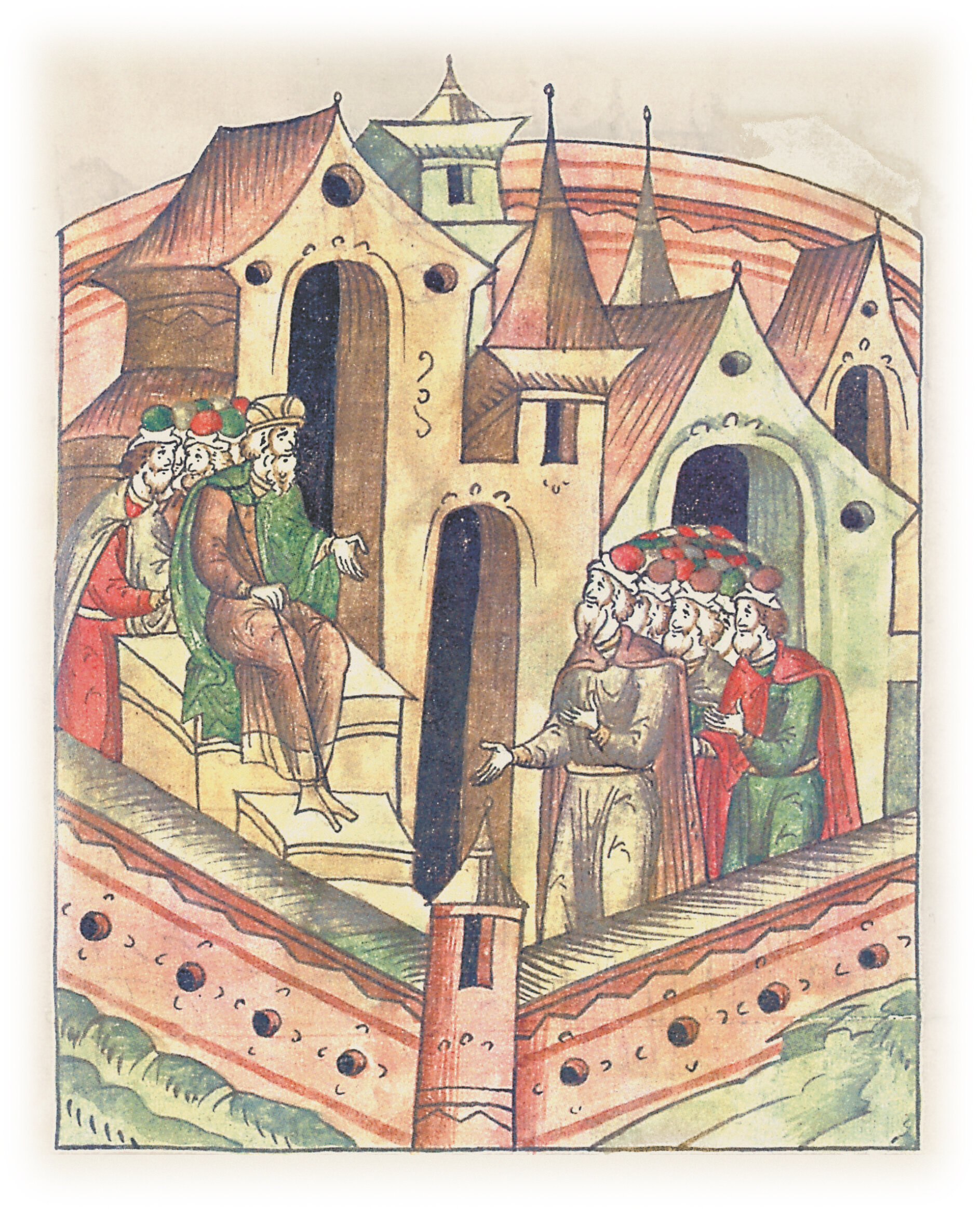 Великий князь Владимир Всеволодович Мономах советуется с боярами, желая идти в Царьград.