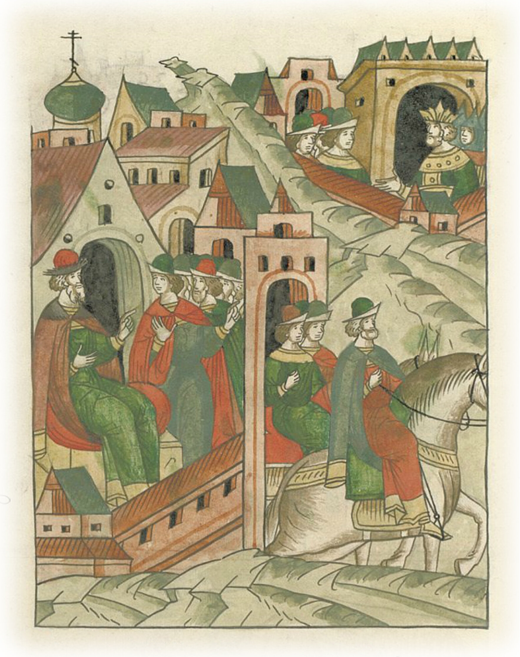 Ругодивские посадники Яким и Захар приезжают в Москву. Воеводы царя Ивана Васильевича Алексей Адашев и Иван Михайлов сообщают им, что государь пожалует их, если сдадут его воеводам помимо Ругодива Вышгород.