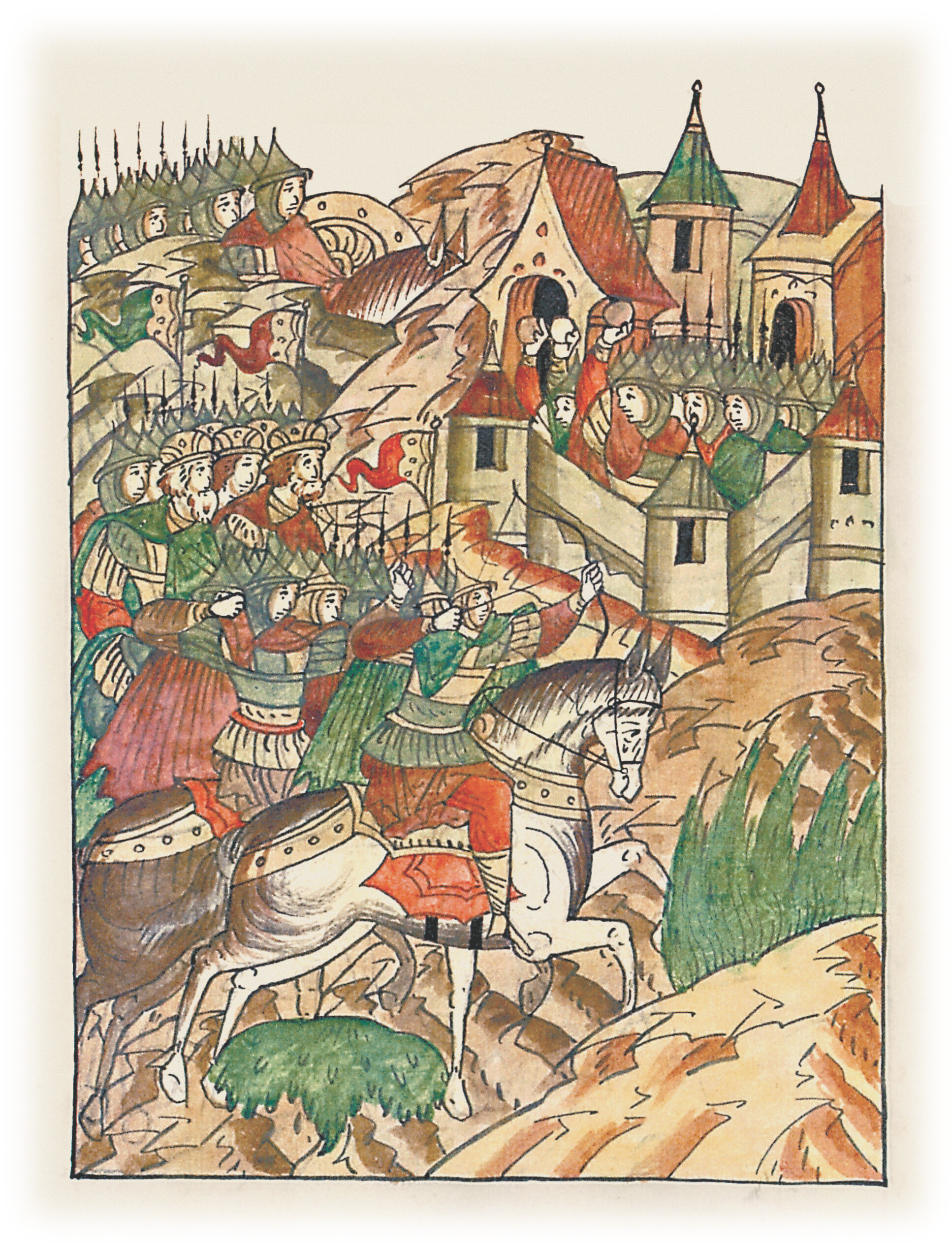 Языки говорят воеводам царя Ивана Васильевича, что магистр окопался большим рвом вокруг города Рындола, бьет из пушек и пищалей и приступает к Рындолу.