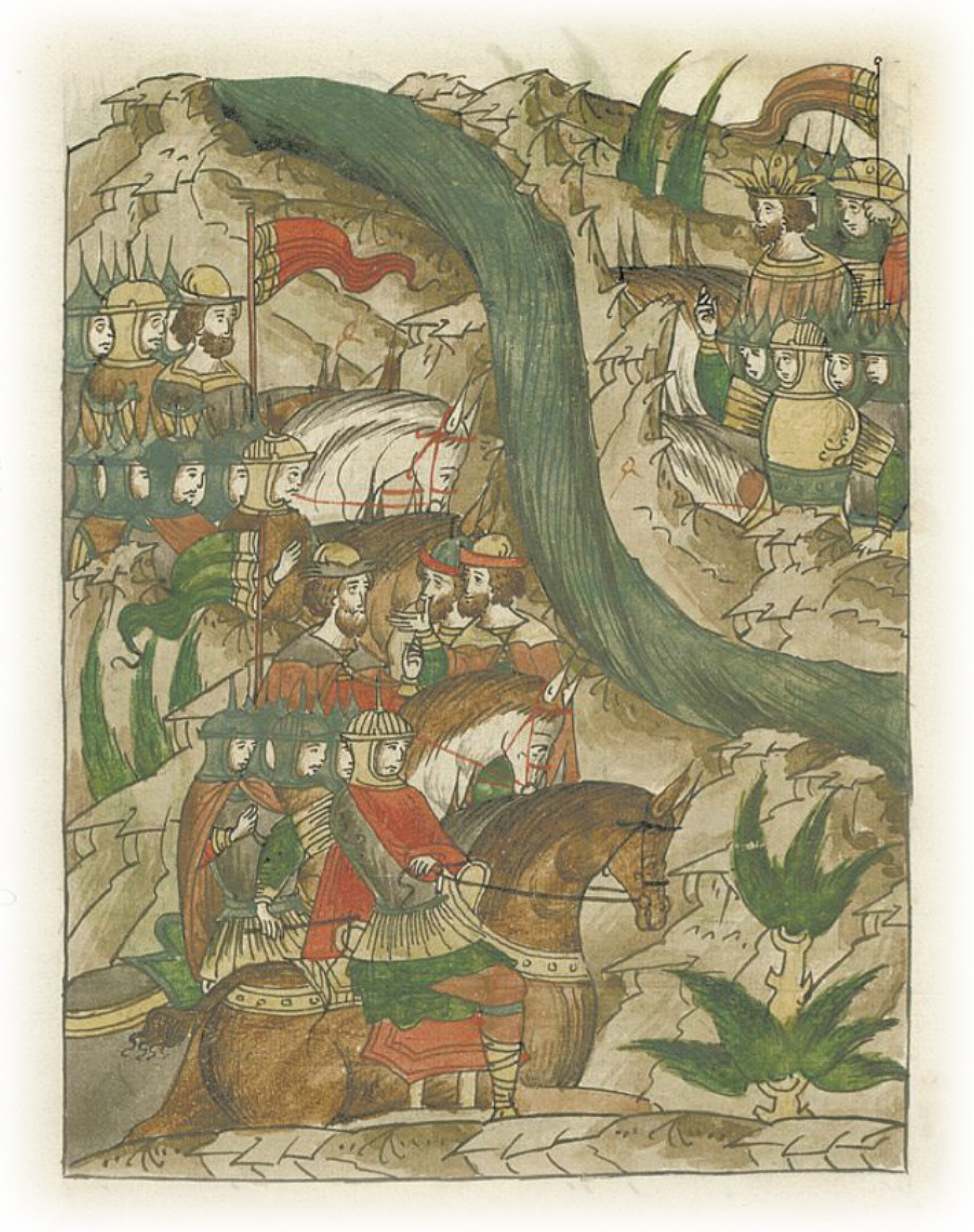 Воеводы царя Ивана Васильевича, разделившись, идут в погоню за царем Емгурчеем.