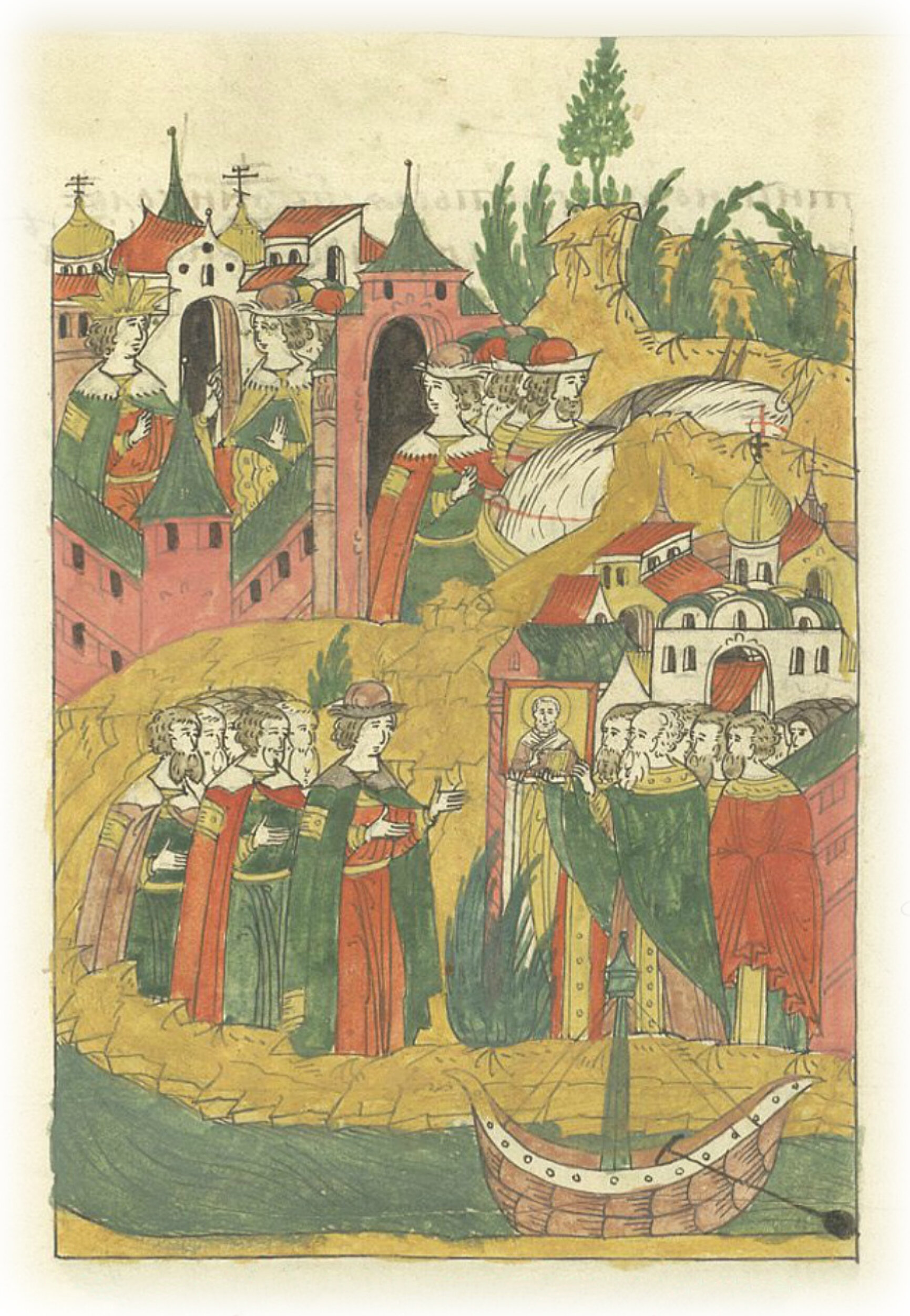 Принесение иконы чудотворца Николы Великорецкого из Вятки в Москву. Царь Иван Васильевич посылает своего брата князя Юрия Васильевича встретить икону у монастыря святого Николы на Угреше.