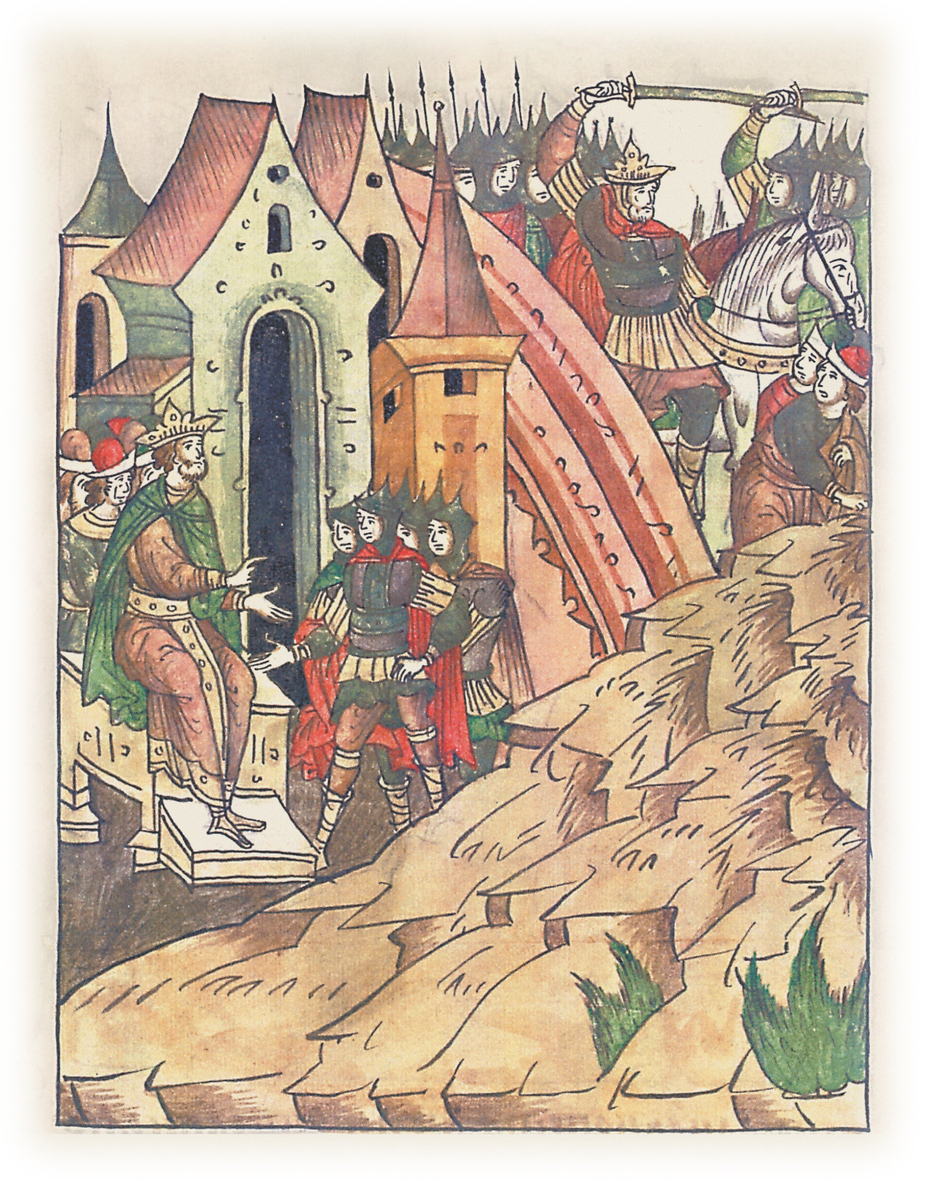Тогда был в Царьграде царь Константин Мономах, и в то время боролся с персами и латынянами.