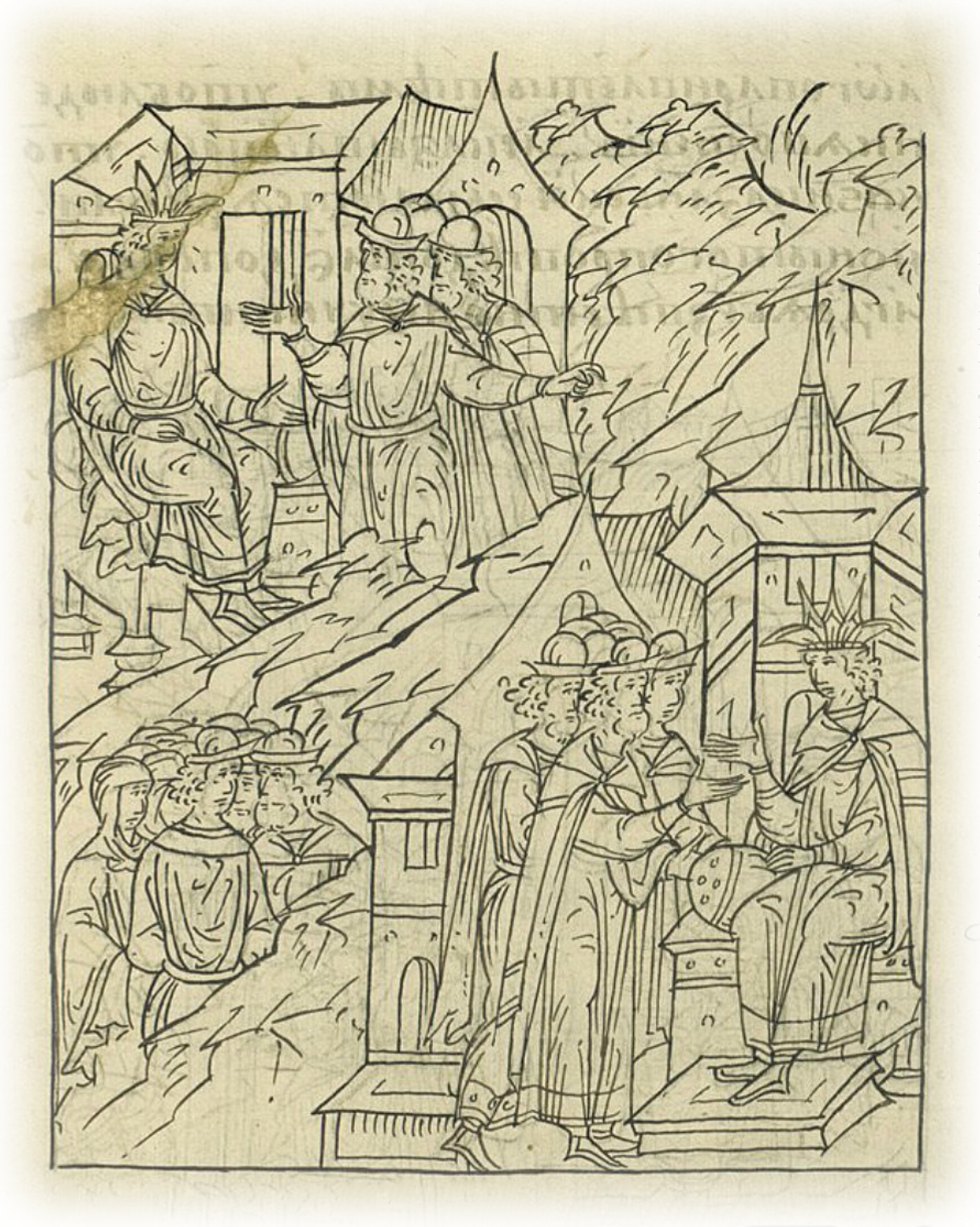Ругодивские посадники Яким и Захар приезжают в Москву. Воеводы царя Ивана Васильевича Алексей Адашев и Иван Михайлов сообщают им, что государь пожалует их, если сдадут его воеводам помимо Ругодива Вышгород.
