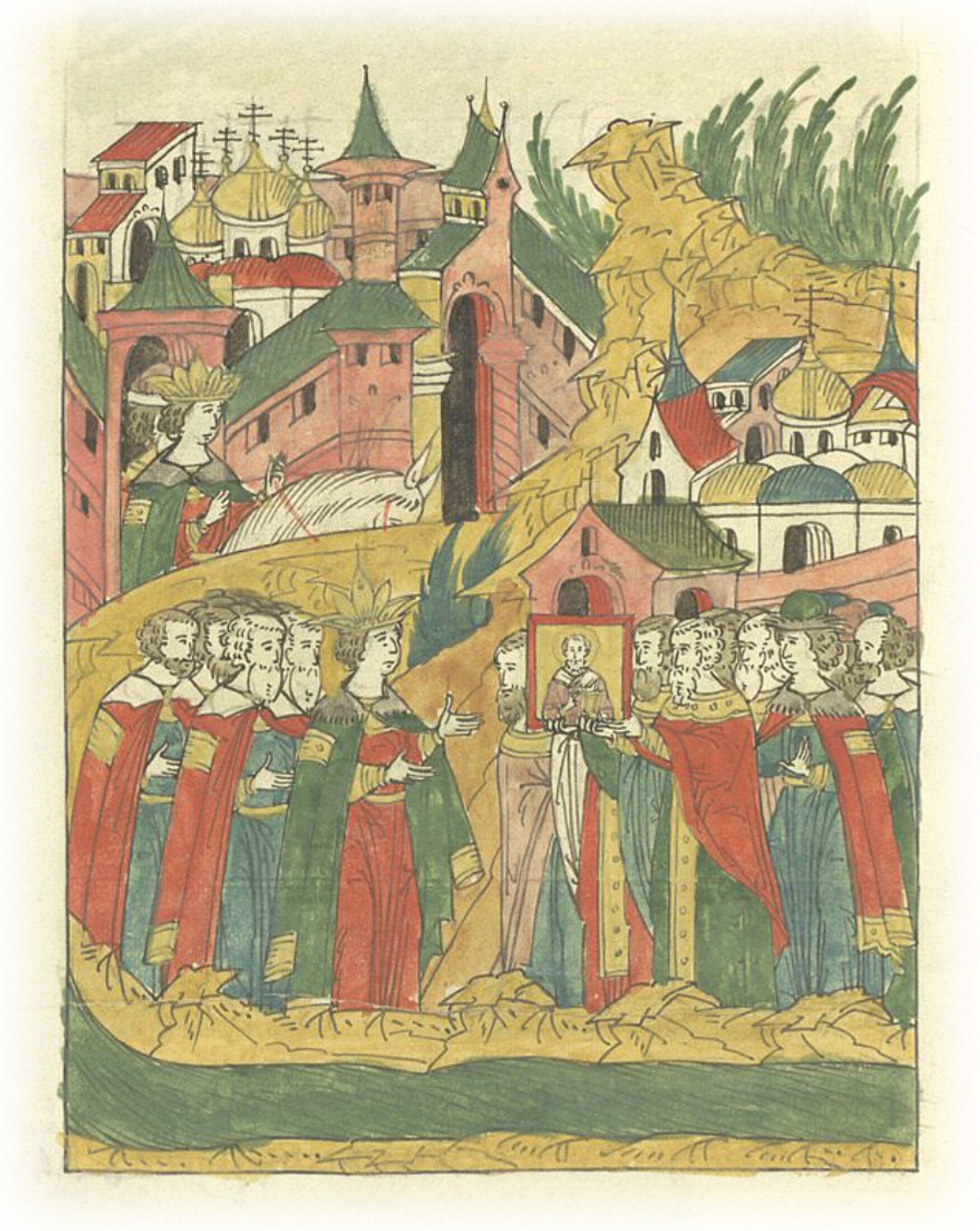 Царь Иван Васильевич встречает икону чудотворца Николы Великорецкого за Новым городом.