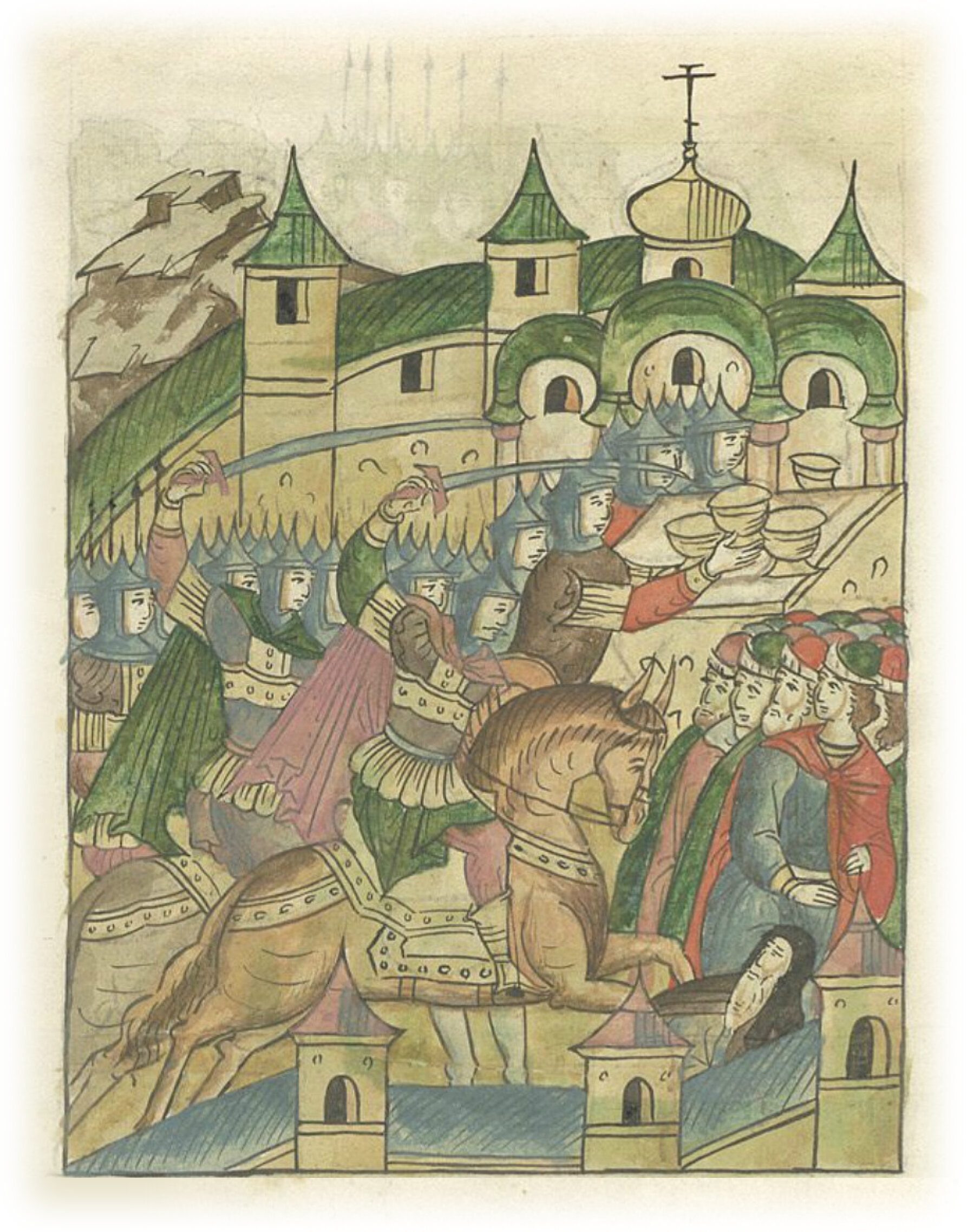 Посланные же Батыем пришли и взяли город Переяславль Русский, который близ Киева, и церковь архангела Михаила сокрушили, а епископа Симеона убили, и сосуды церковные золотые и серебряные, и драгоценные камни взяли,