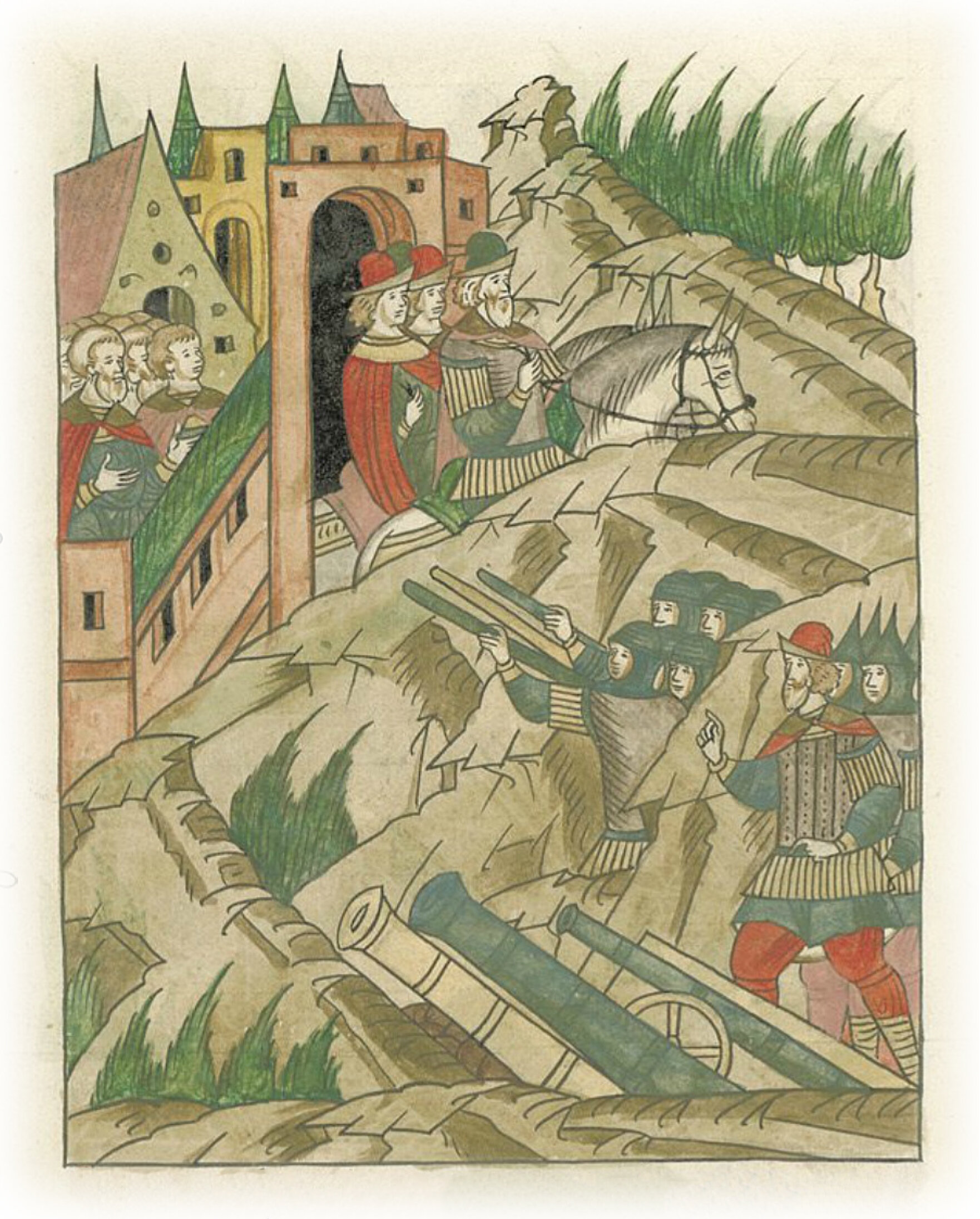 Языки говорят воеводам царя Ивана Васильевича, что магистр окопался большим рвом вокруг города Рындола, бьет из пушек и пищалей и приступает к Рындолу.