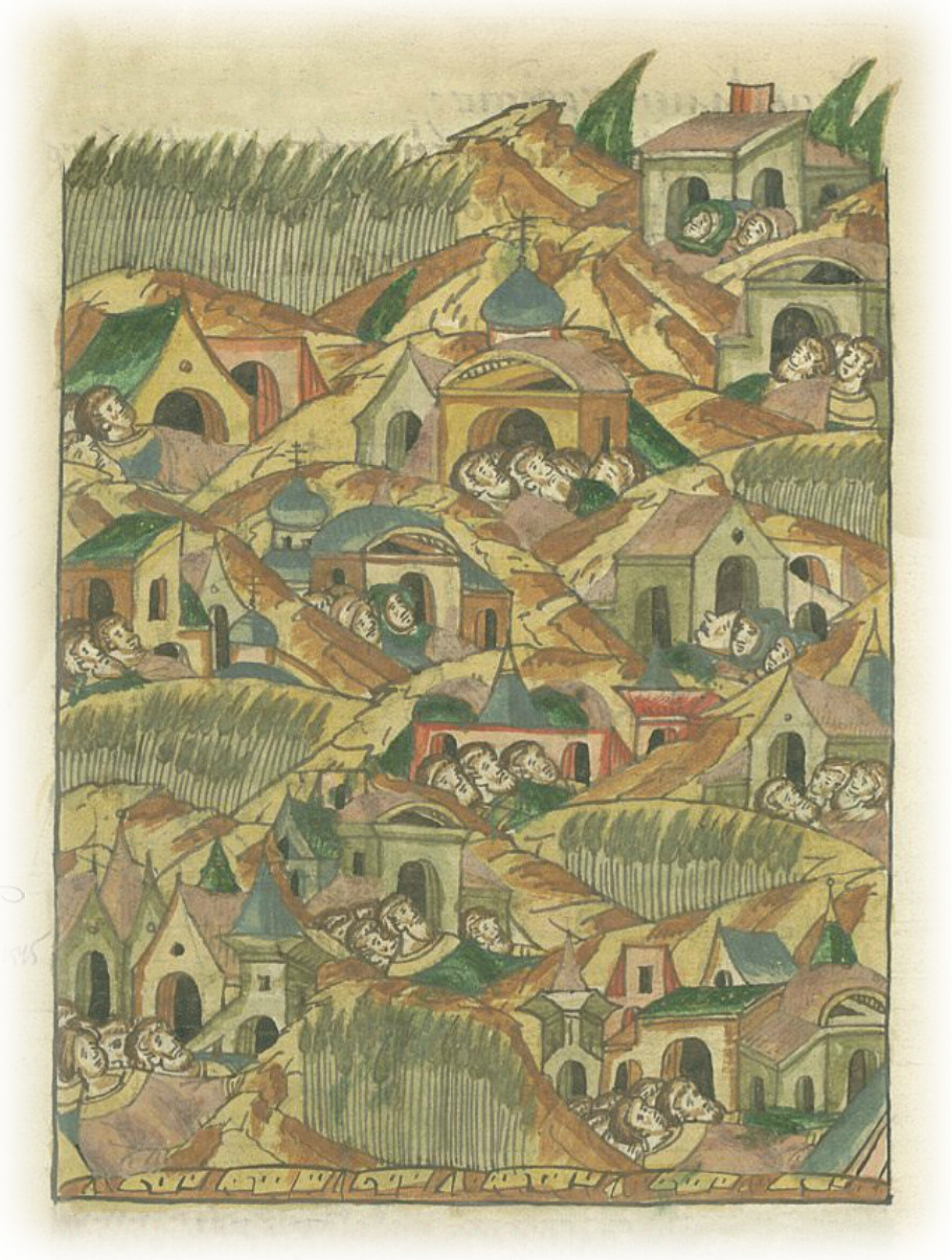 В 6928 (1420) году (месяца) сентября. Сильный мор распространился по всей Русской земле, особенно в Костроме, Ярославле, в Юрьеве, Владимире, Суздале, Переяславле, Галиче, в Плесе и Ростове. Умирали люди, стояло несжатое жито на нивах, некому было жать.