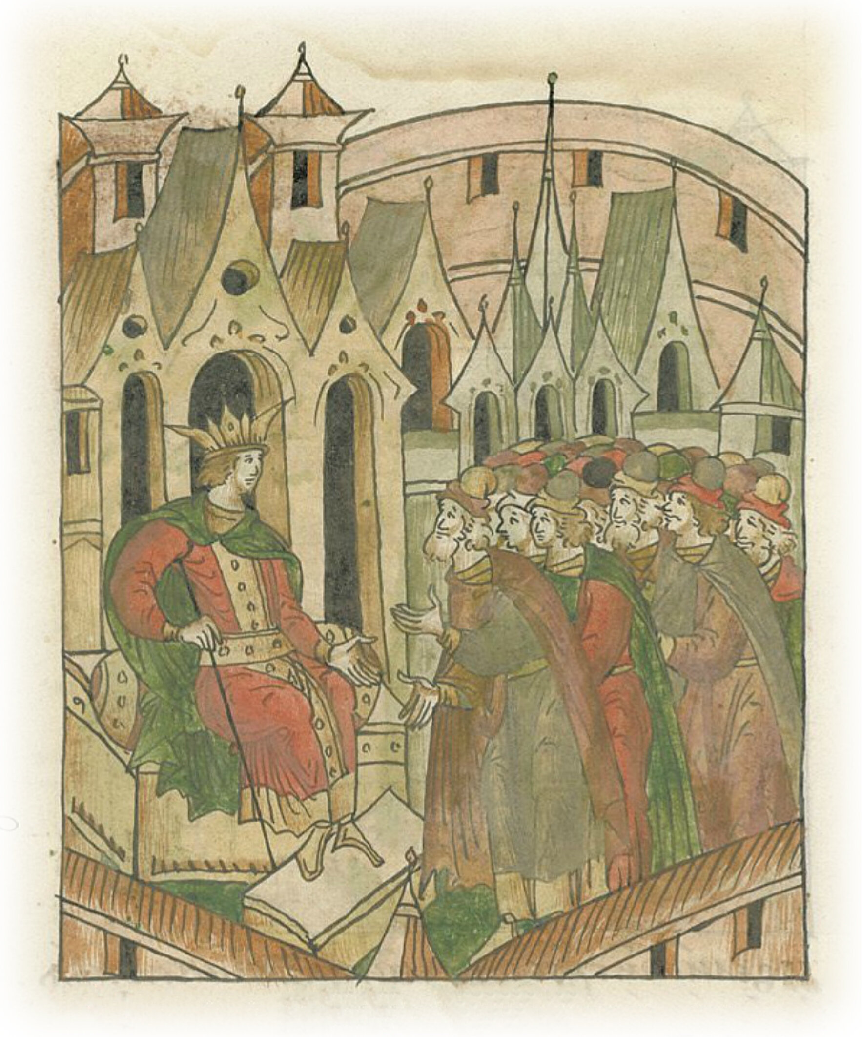 Ругодивские посадники Яким и Захар приезжают в Москву. Воеводы царя Ивана Васильевича Алексей Адашев и Иван Михайлов сообщают им, что государь пожалует их, если сдадут его воеводам помимо Ругодива Вышгород.