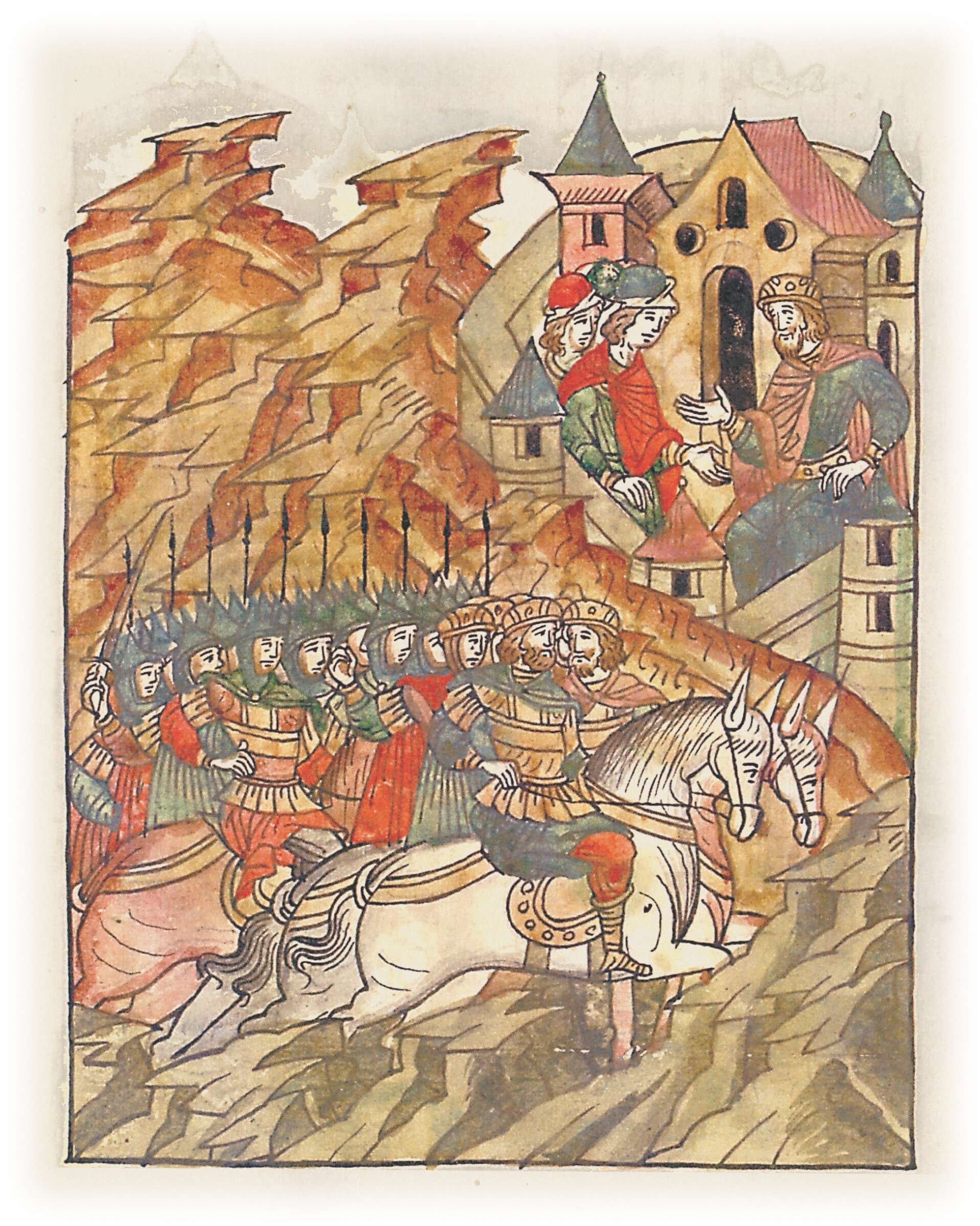 Воеводы царя Ивана Васильевича, разделившись, идут в погоню за царем Емгурчеем.