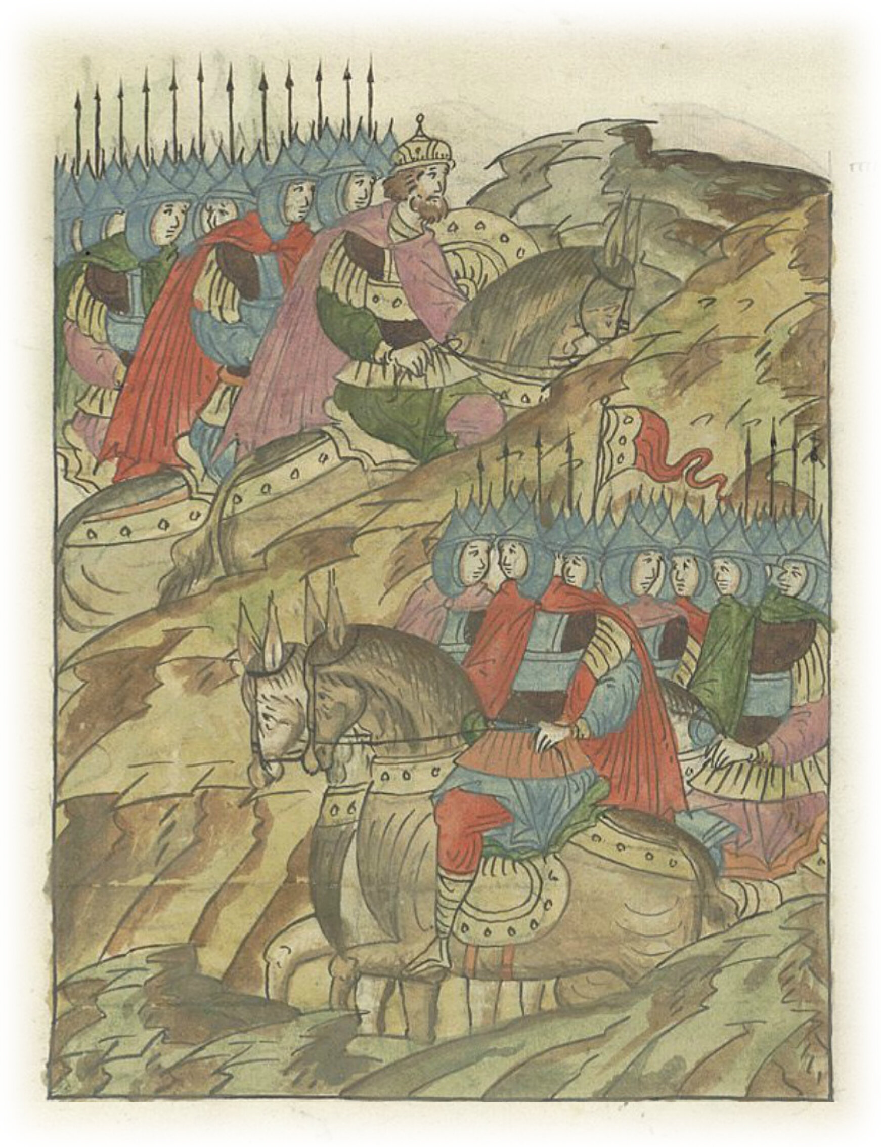Воеводы царя Ивана Васильевича, разделившись, идут в погоню за царем Емгурчеем.