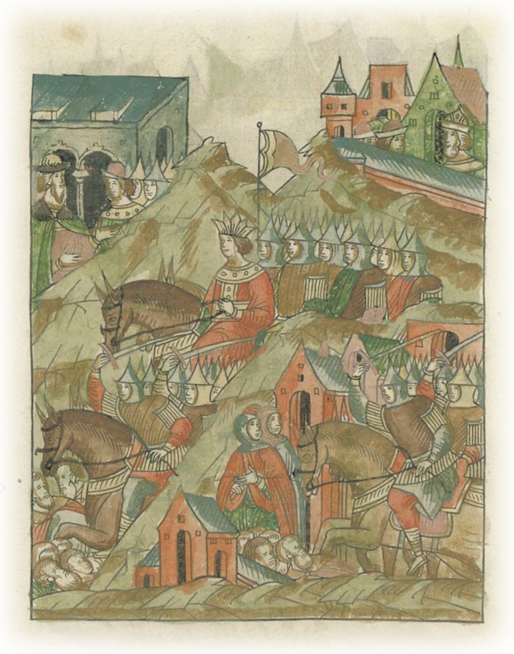 Языки говорят воеводам царя Ивана Васильевича, что магистр окопался большим рвом вокруг города Рындола, бьет из пушек и пищалей и приступает к Рындолу.