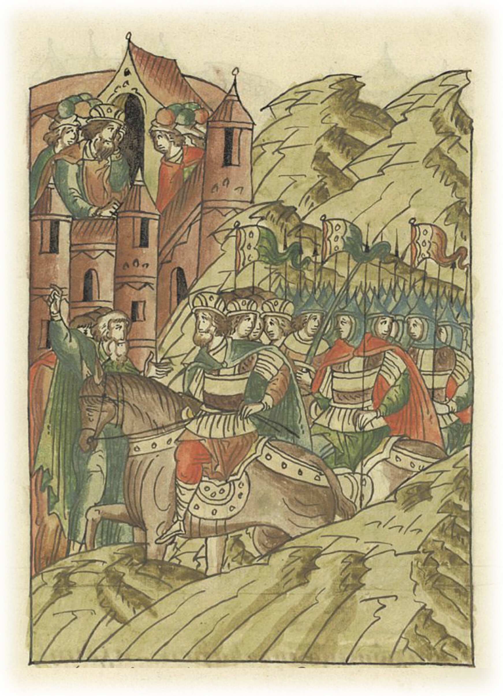 Когда Мстислав увидел множество (воинов) около города, а помощи не от кого ожидать, начал просить (свободный) путь (для отхода).
