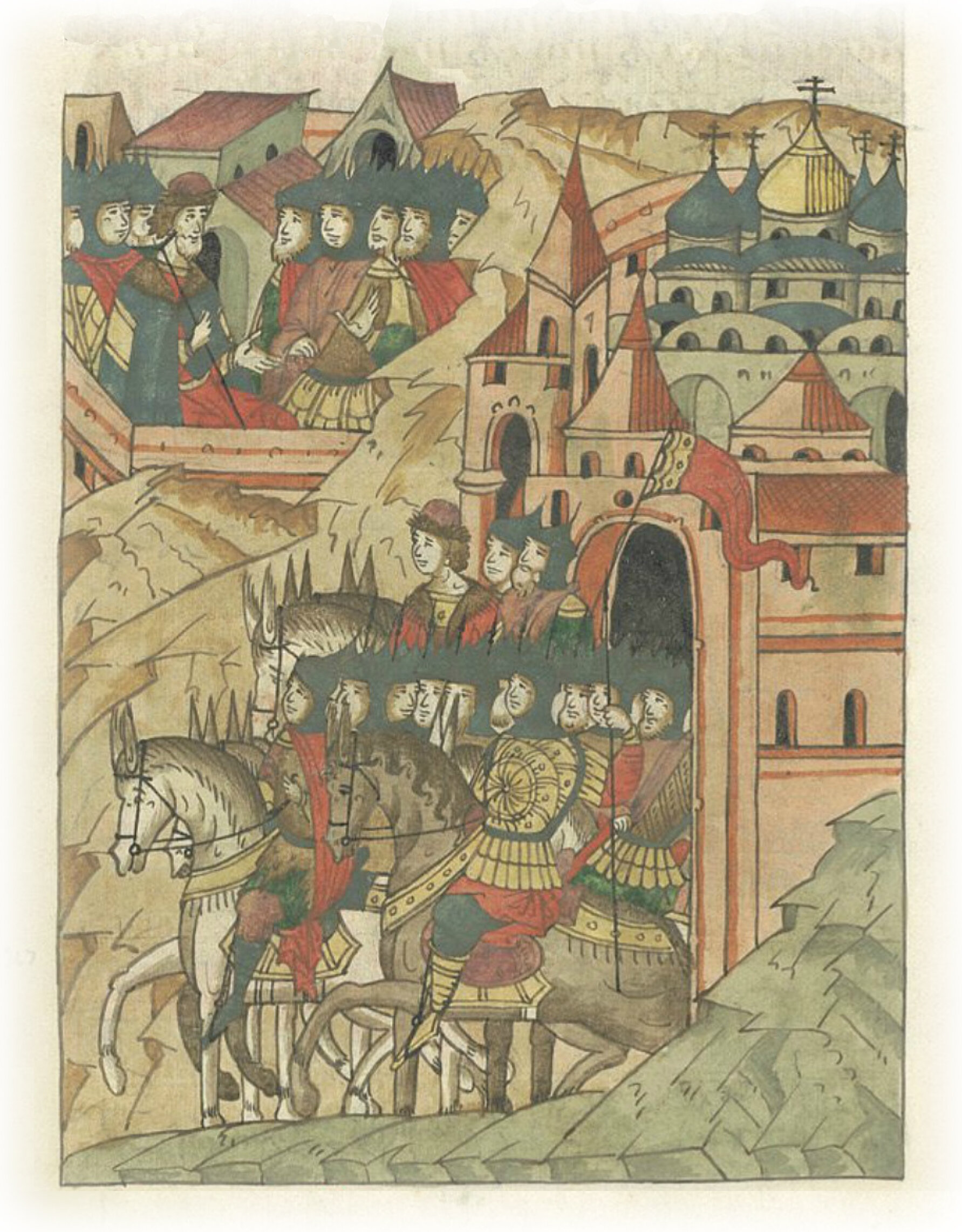 В 6790 (1282) году. Князь Андрей Александрович пошел из Новгорода к Владимиру, взяв с собою новгородцев многих и посадника Семена Михайловича, и другого посадника, Якова Дмитриевича, с оружием ратным, боясь старшего своего брата, великого князя Дмитрия Александровича, ибо был (тот) в Переславле со многою силою, собирая рать отовсюду.
